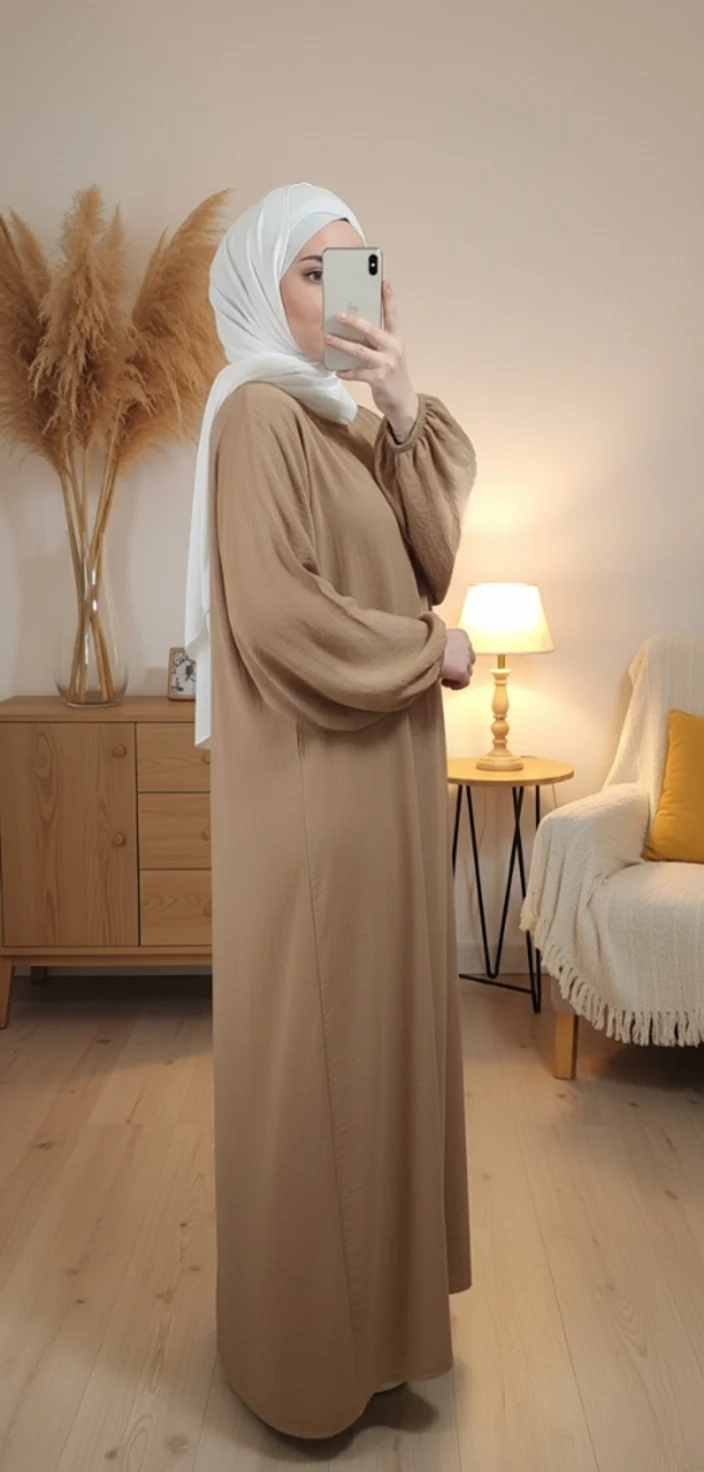 Soyez le premier à laisser votre avis sur “Abaya Camel Simple Longue avec Manches Élastiques”
