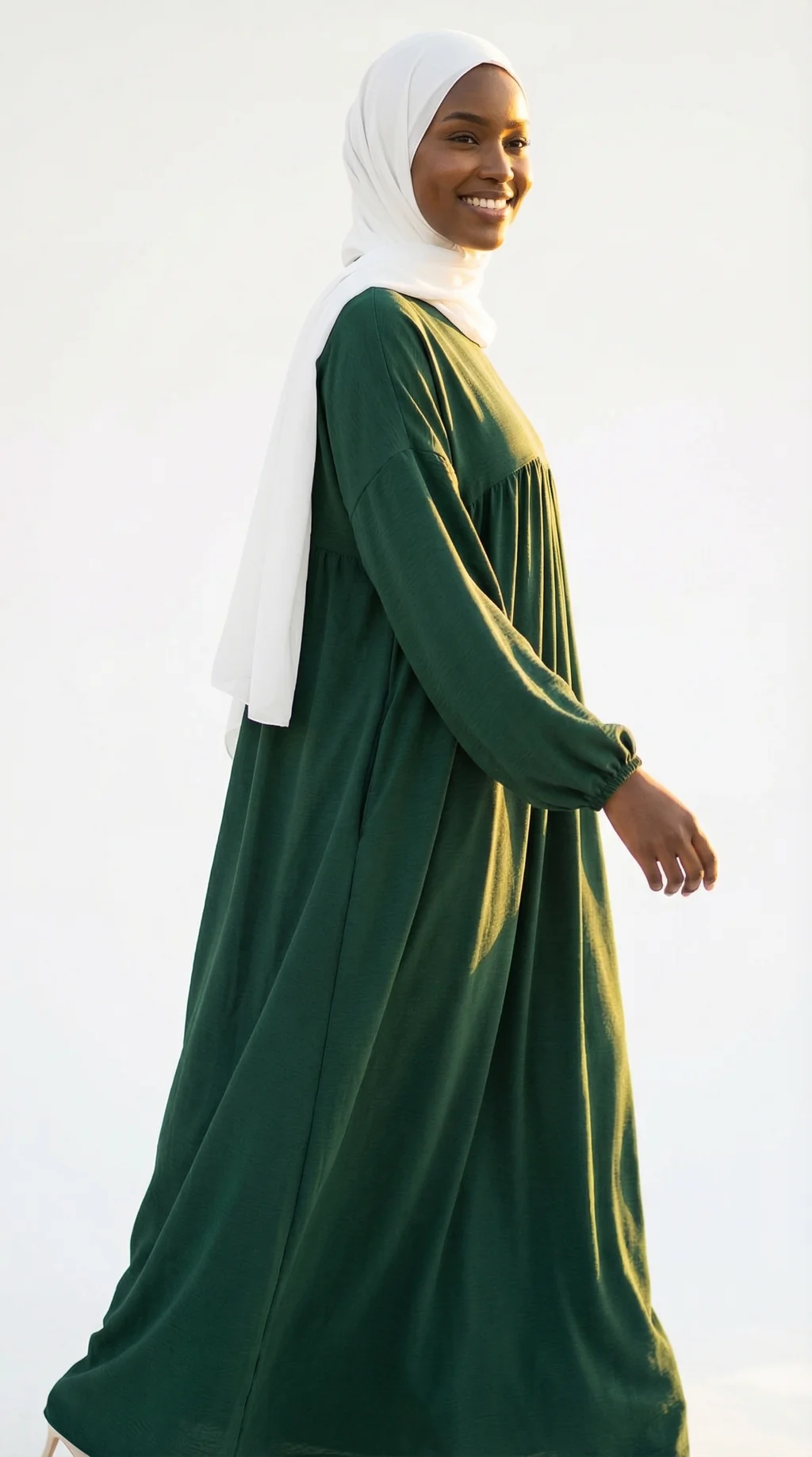 La teinte vert sapin, symbolisant la croissance, la paix, et la renaissance, s’associe harmonieusement aux diverses pièces de notre collection, comme les kimonos et les jilbabs, pour des superpositions sophistiquées et des looks personnalisés.