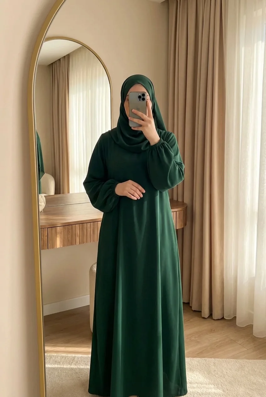 Couleur vert forêt intemporelle qui s’associe facilement avec hijab et accessoires