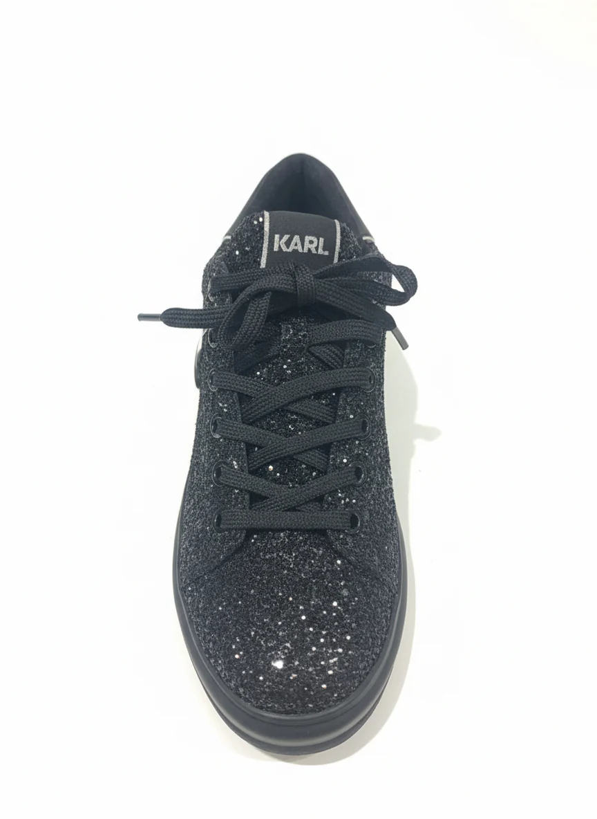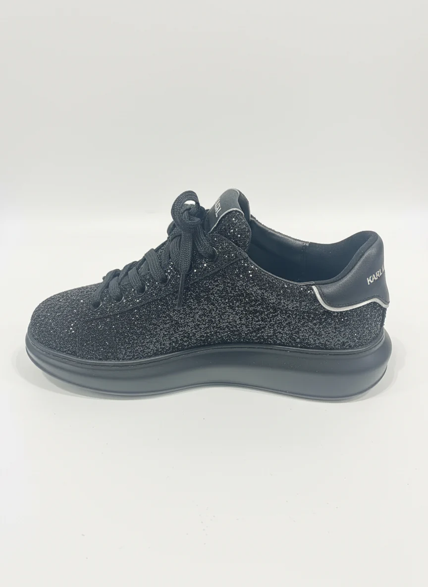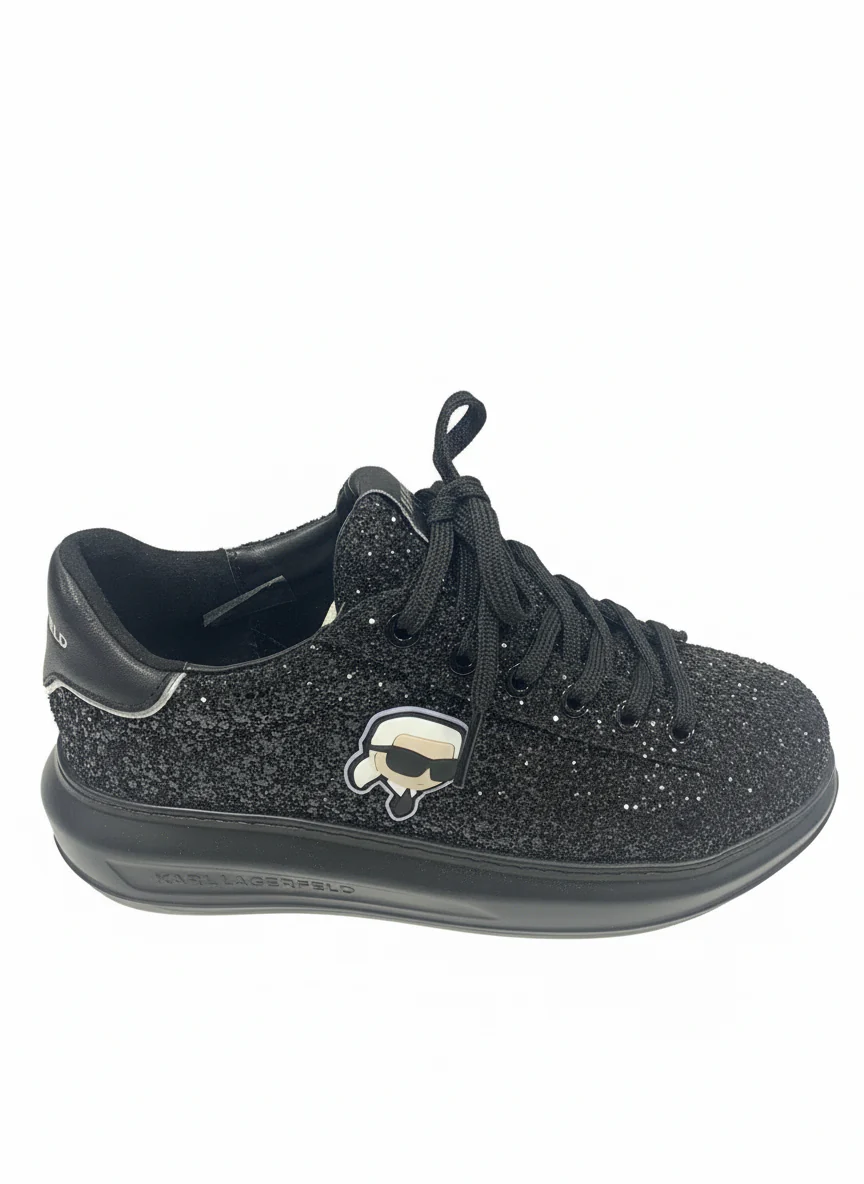 Basket Karl lagerfeld à paillettes noir, logo Karl en matière cuir