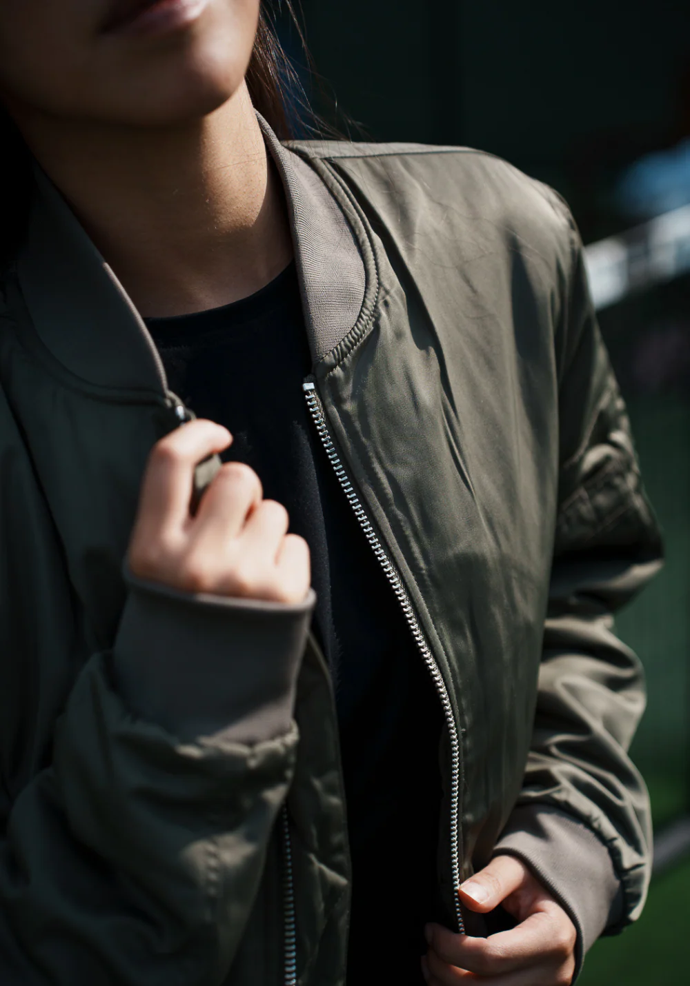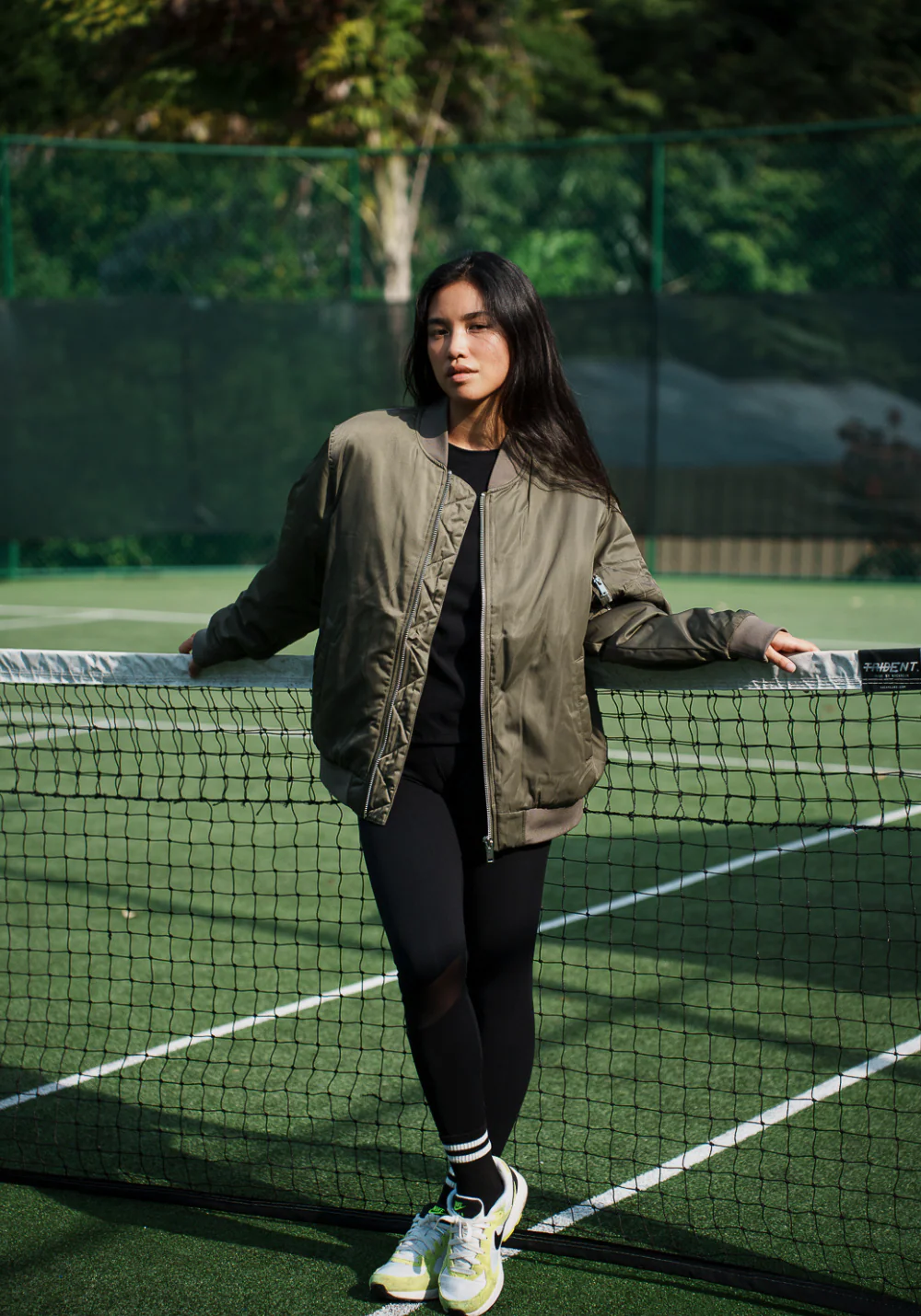 Veste Bomber kaki – Fermeture éclair en métal argenté au milieu devant– Côtes 1×1 à l’ourlet des manches, à l’ourlet du bas et au col– Poche zippée sur la manche – Intérieur entièrement matelassé– Poche poitrine intérieure plaquée avec fermeture à pression– Ouverture de fermeture éclair à l’intérieur au niveau de l’ourlet inférieur et de […]