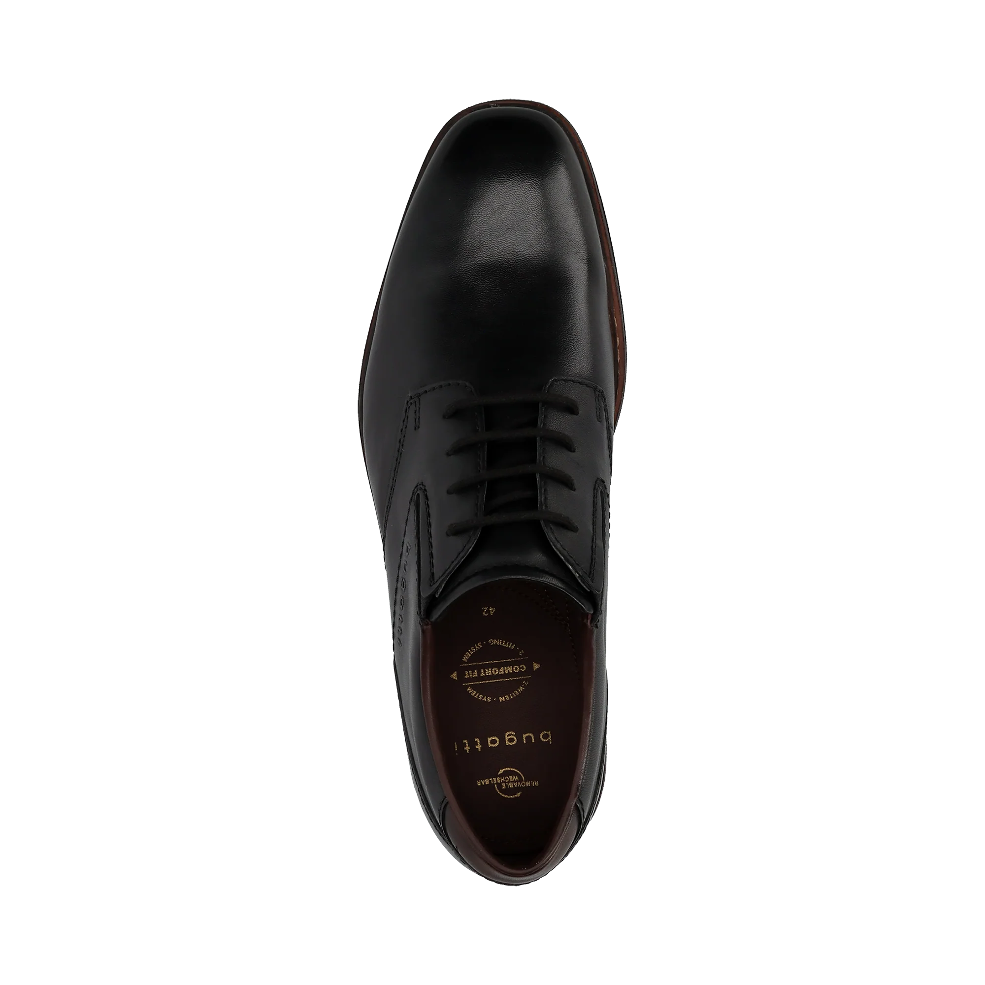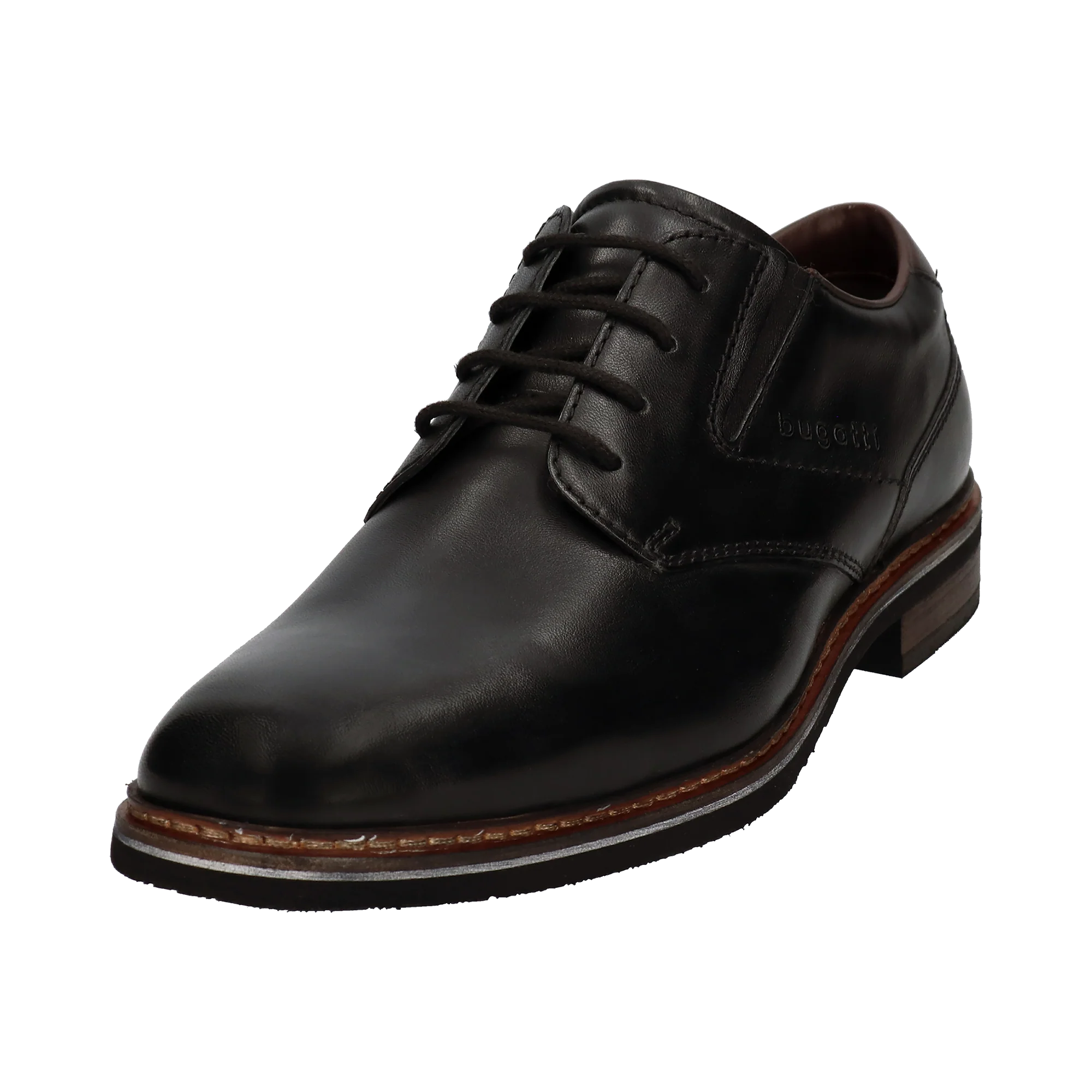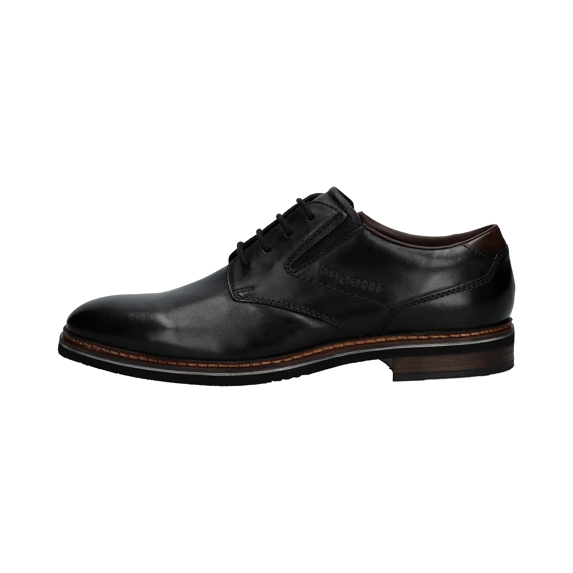 Die Businessschuhe aus schwarzem Leder von bugatti verfügen über elastische Elemente für eine individuelle Passform. Mit ihren robusten und strapazierfähigen Sohlen eignen sich diese Schuhe ideal für Bürotage und formelle Anlässe und bieten eine perfekte Kombination aus Stil und Strapazierfähigkeit.