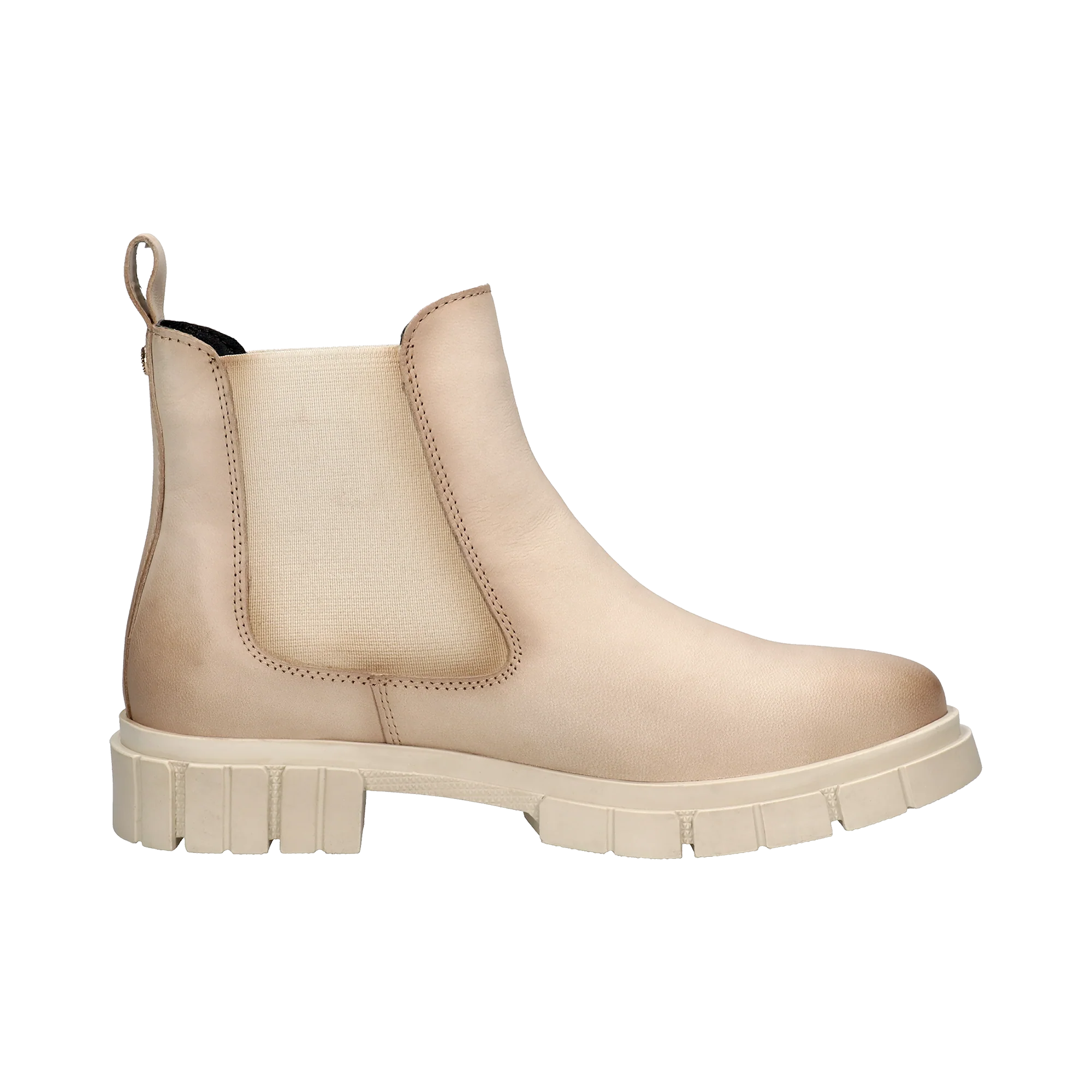 Die Chelsea-Stiefel für Damen aus beigem Leder sind ein echter Hingucker. Der elastische Schaft erleichtert das Hineinschlüpfen. Sie können an kalten Tagen zur Arbeit, aber auch zum Ausgehen getragen werden, da sie durch ihr schlichtes Design vielseitig einsetzbar sind.