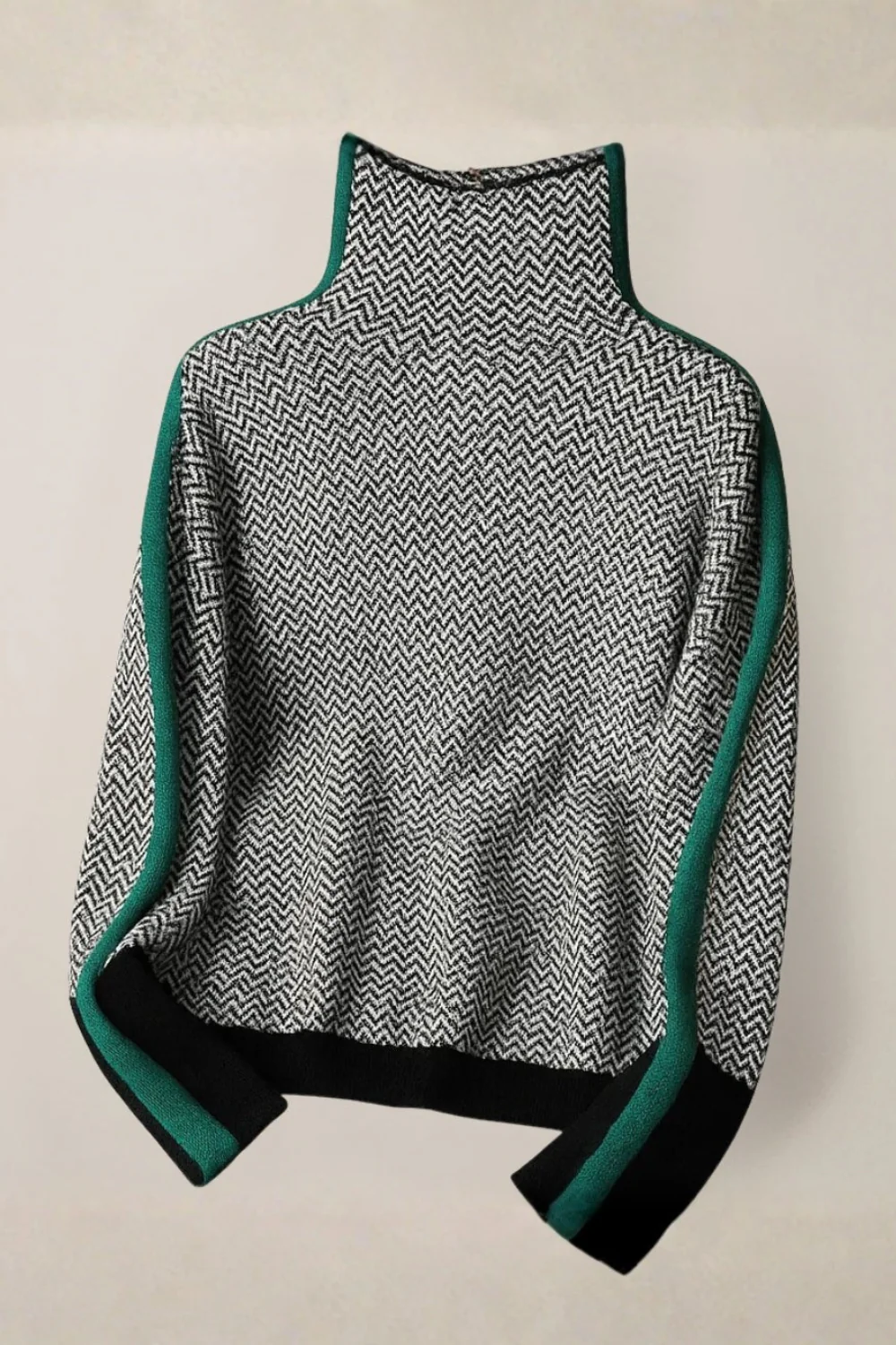 Émilie | Pull Femme Élégant à Col Roulé avec Rayures Contrastées Modernes