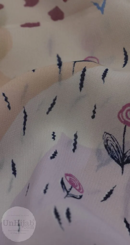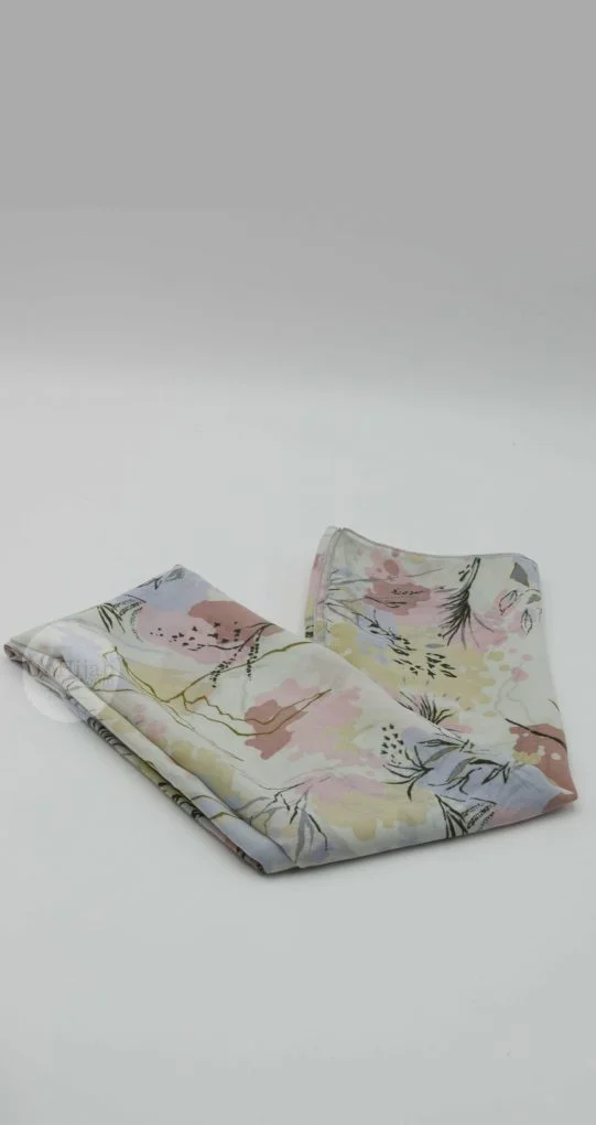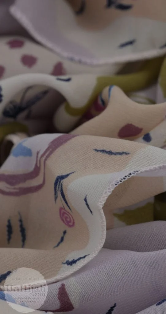 Ce hijab est fabriqué en Mousseline De Soie Imprimé, qui garantit à la fois légèreté et élégance. Il est doté d'un ourlet roulotté qui apporte une touche de finition impeccable à l'ensemble de votre tenue.