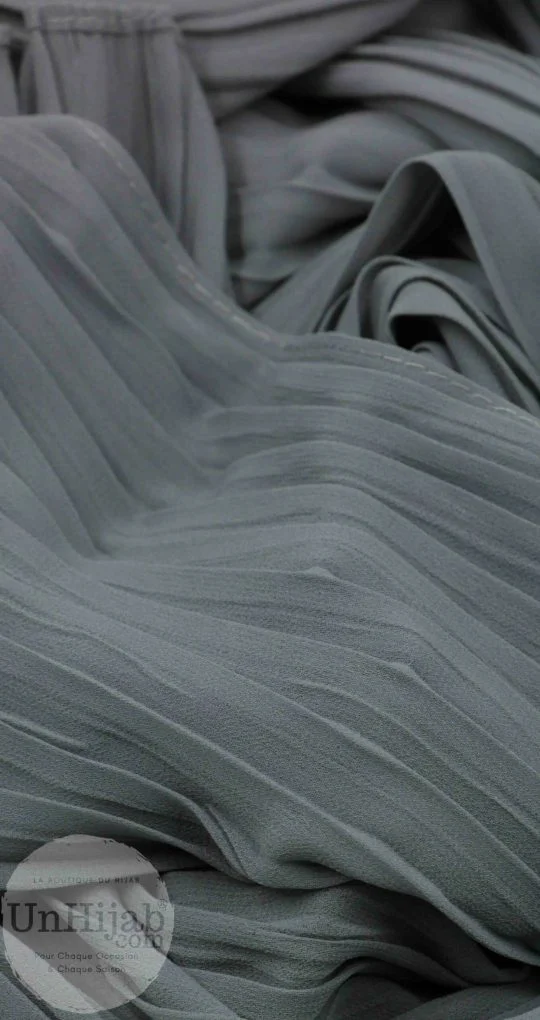 Le Hijab Mousseline Plissé Collection Wisteria en gris est l'accessoire parfait pour sublimer votre tenue au quotidien. Fabriqué en mousseline plissée à l'accordéon, ce hijab présente une texture légère et fluide qui ajoutera une touche de sophistication à votre look.