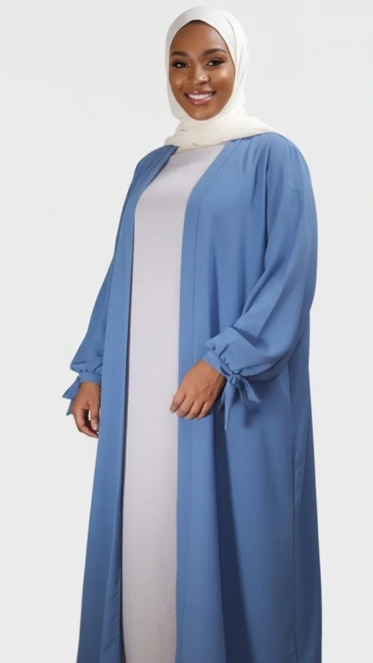 Plongez dans l’univers de l’élégance avec notre kimono abaya en soie de Médine bleu denim avec manches à nœud, une pièce qui allie la sophistication à la modernité. Cette abaya femme, symbole de grâce et de confort, est le reflet de la beauté intemporelle qui habite chaque femme musulmane.