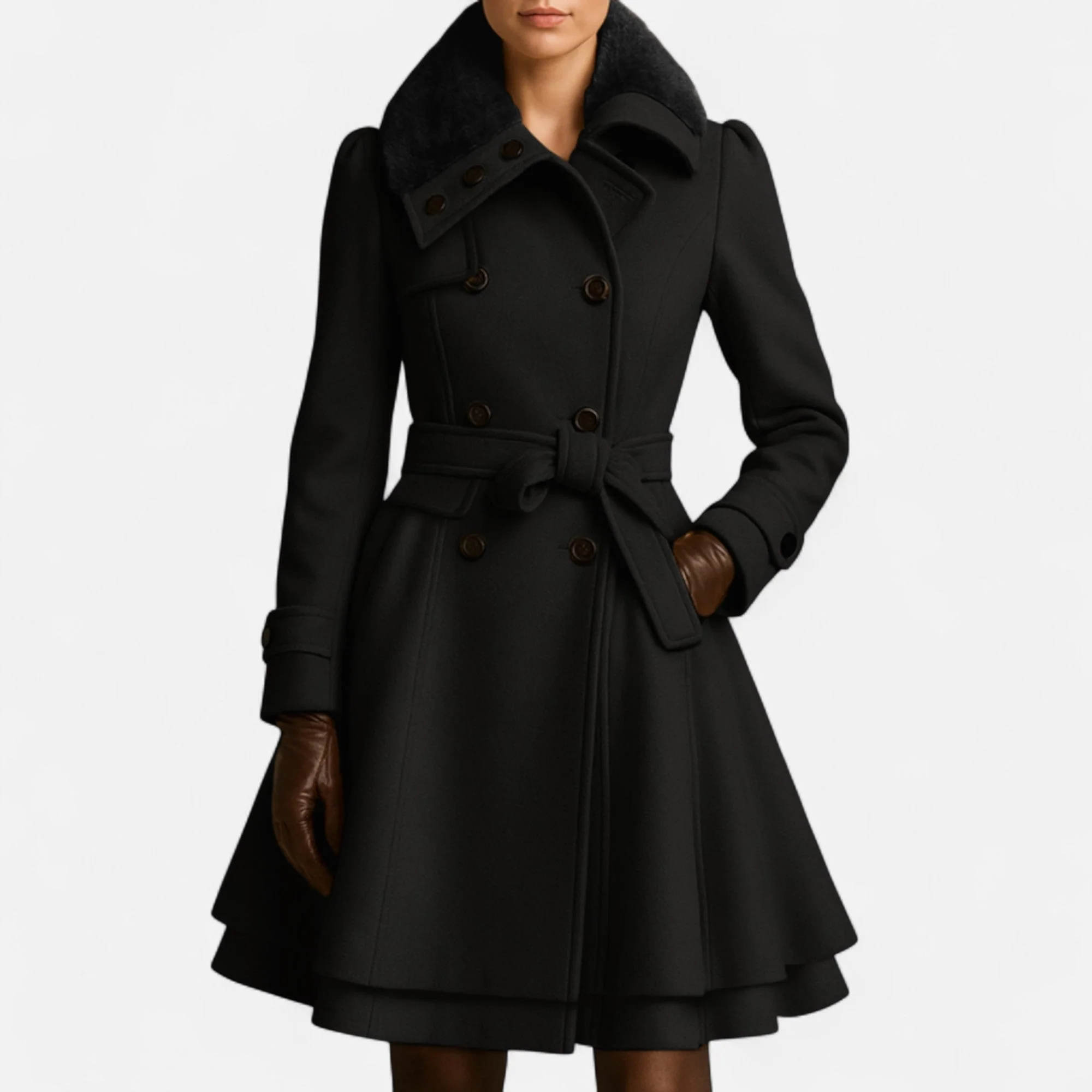 Laurior | Manteau en laine pour femme avec ceinture et col en fourrure