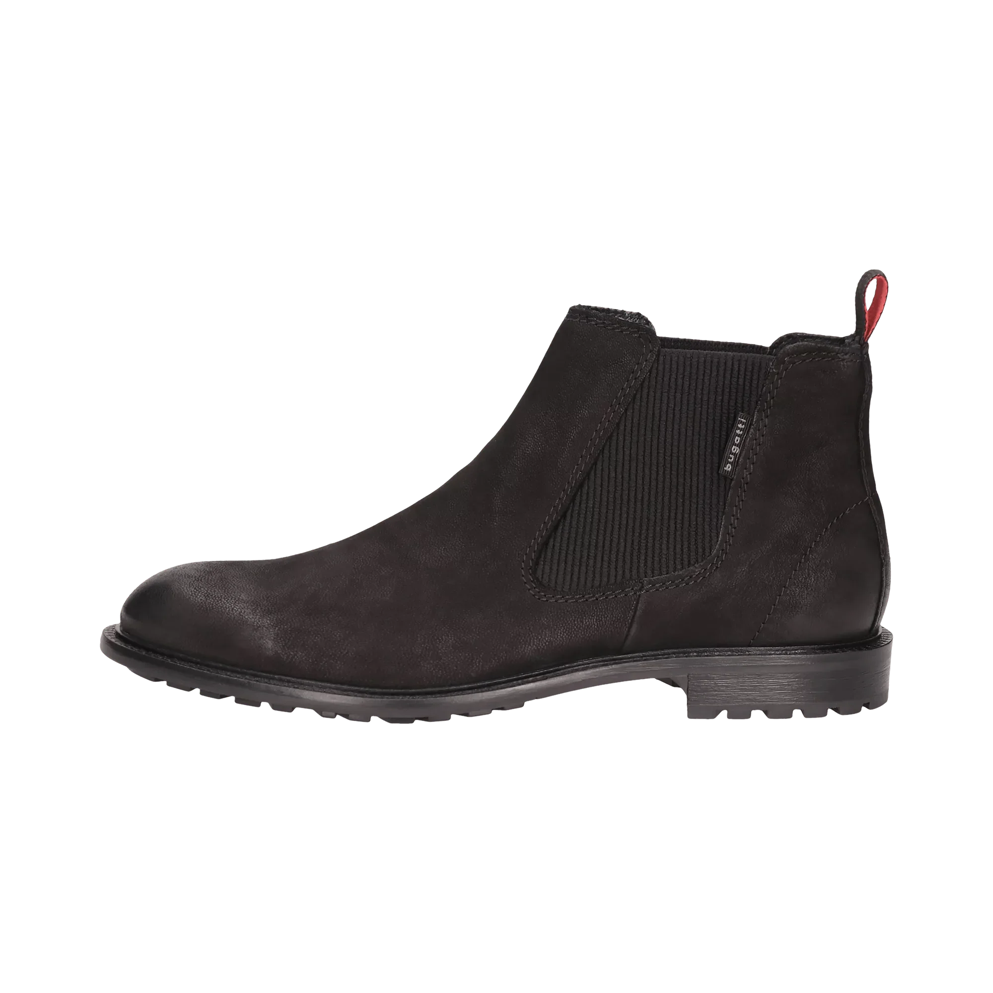Die Chelsea-Boots der Bonifacio-Gruppe sind aus Nubukleder gefertigt, das sich weich anfühlt und bei guter Pflege lange hält. Diese schwarzen Stiefel von bugatti zeigen einen feinen Used Look und bieten Leichtigkeit und Bequemlichkeit. Die klassische Konstruktion mit dehnbaren Einsätzen und einer hinteren Anziehlasche sorgen für einen hohen Tragekomfort.
