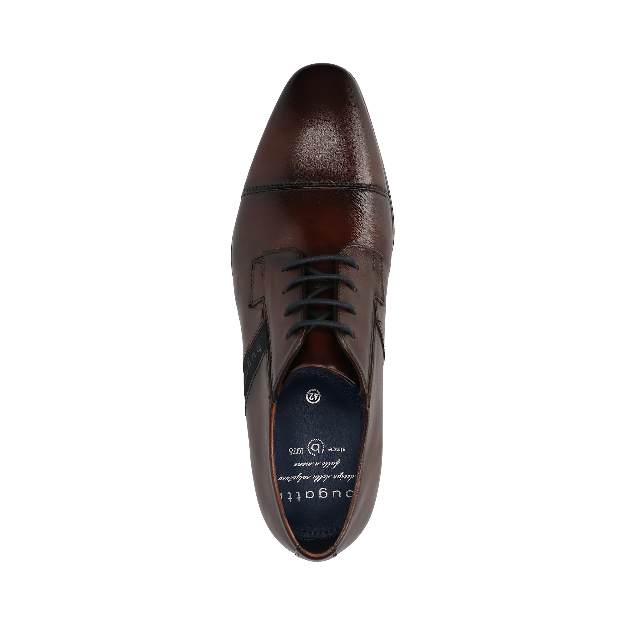 bugattis ausgefeilter Ansatz bei Business-Schuhen spiegelt sich am besten in diesen braunen Schnürschuhen aus Nappaleder wider. Veredelt mit der Care-Imprägnierung-Technologie, verfügen diese Schuhe über eine Innensohle aus Leder und Textil und eine hochwertige Synthetiksohle, die Funktionalität garantiert und gleichzeitig vielseitige Stylingmöglichkeiten bietet.