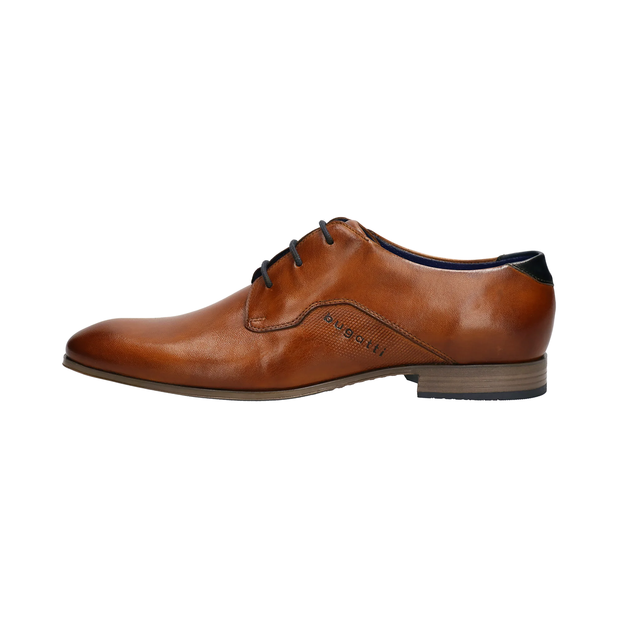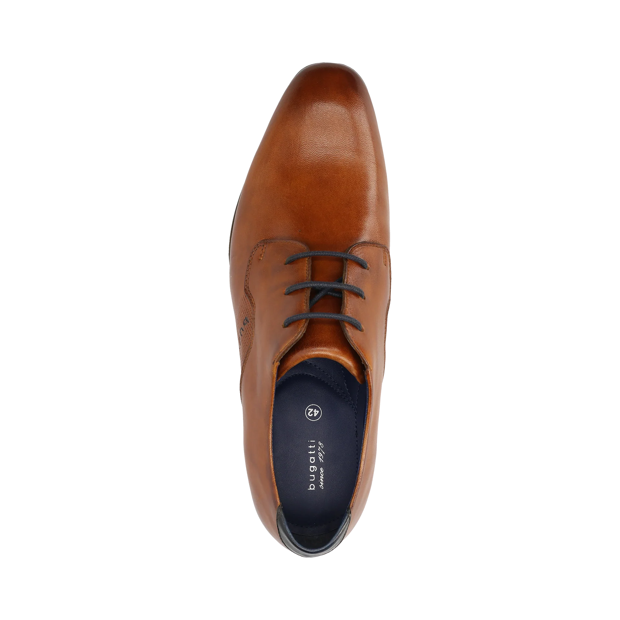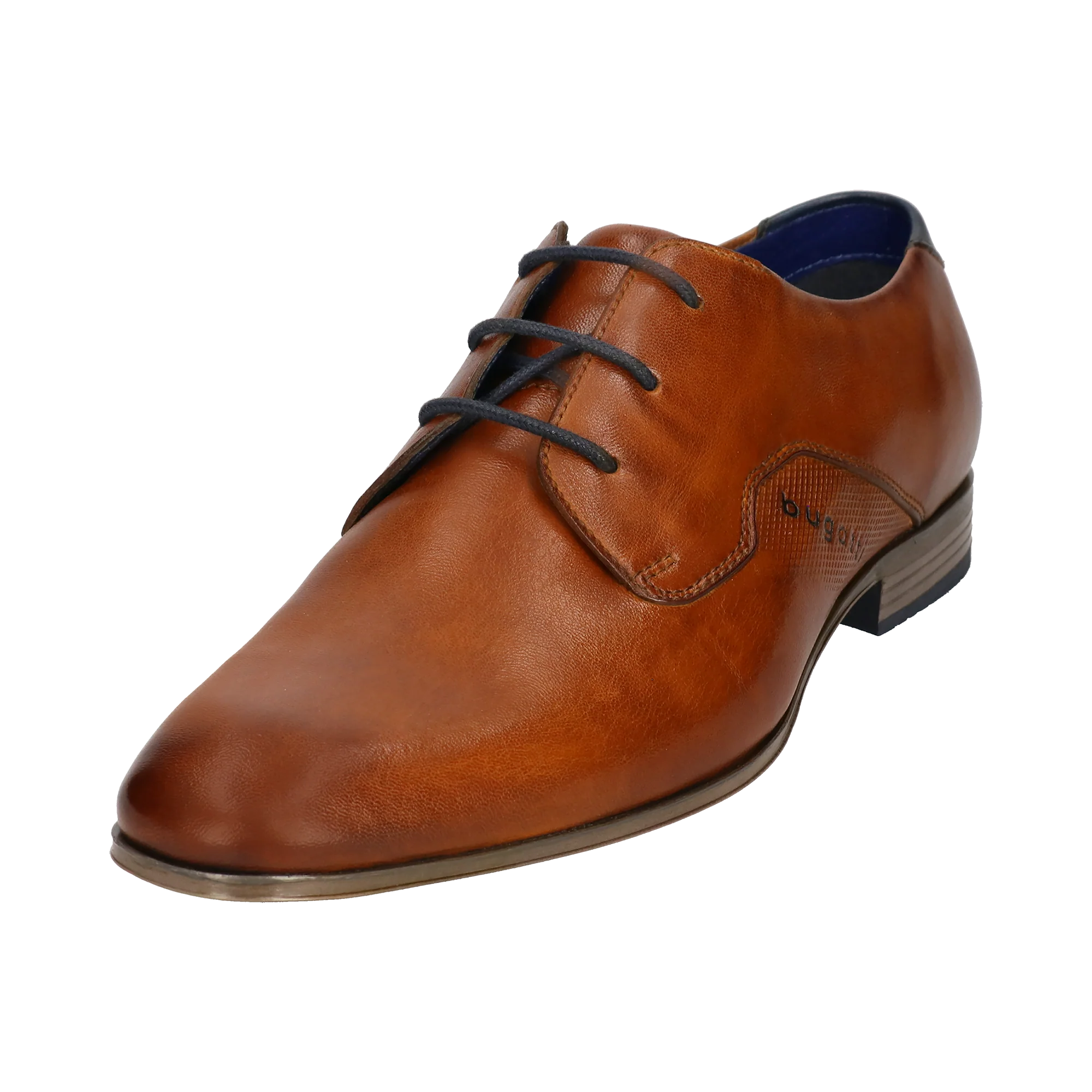 Diese bugatti Business-Schuhe mit klarer Linienführung, hochqualitativem Leder und dünner Sohle muten sehr elegant an. Ihr kognakfarbenes Braun ergänzt sich perfekt zu zahlreichen blauen Anzugkombinationen.