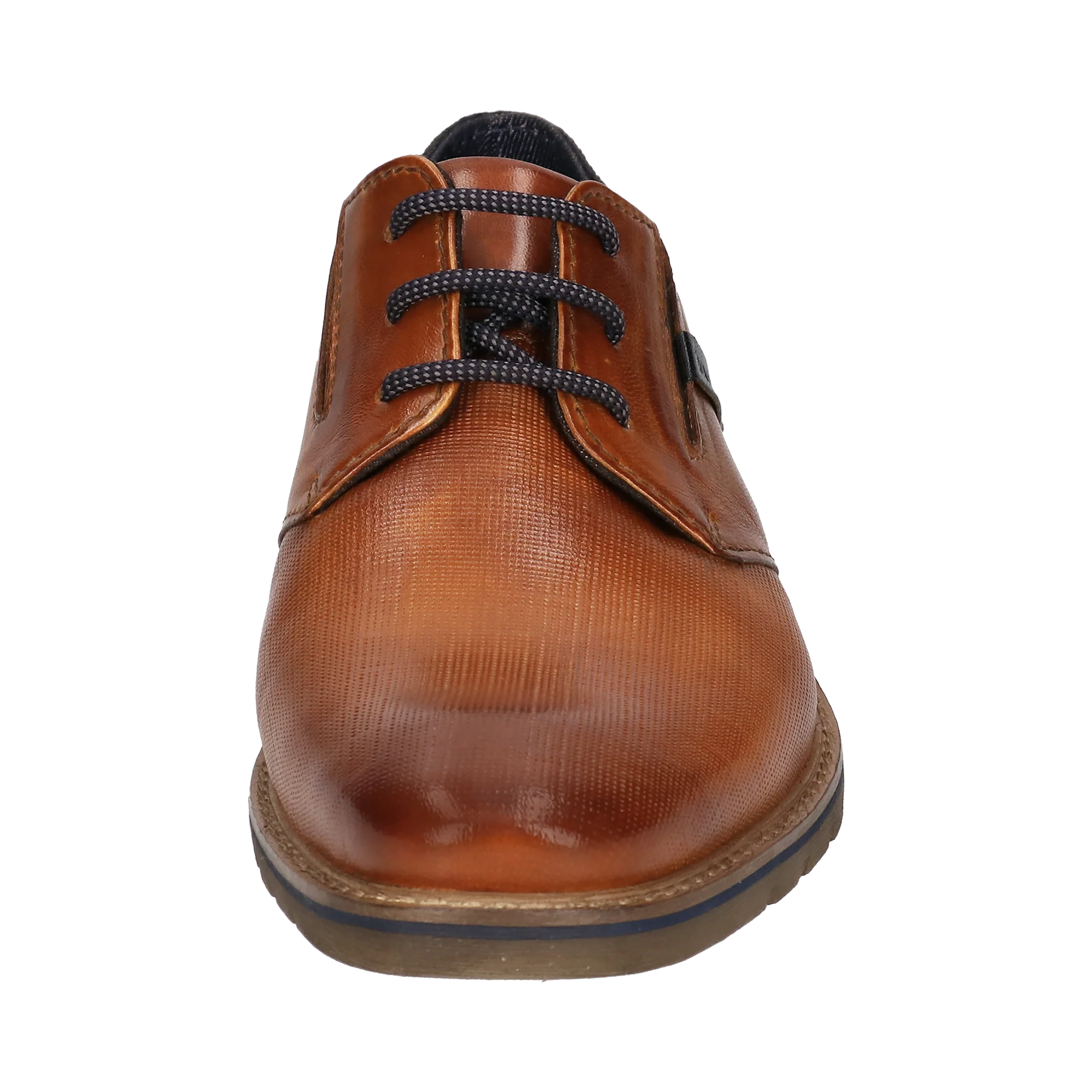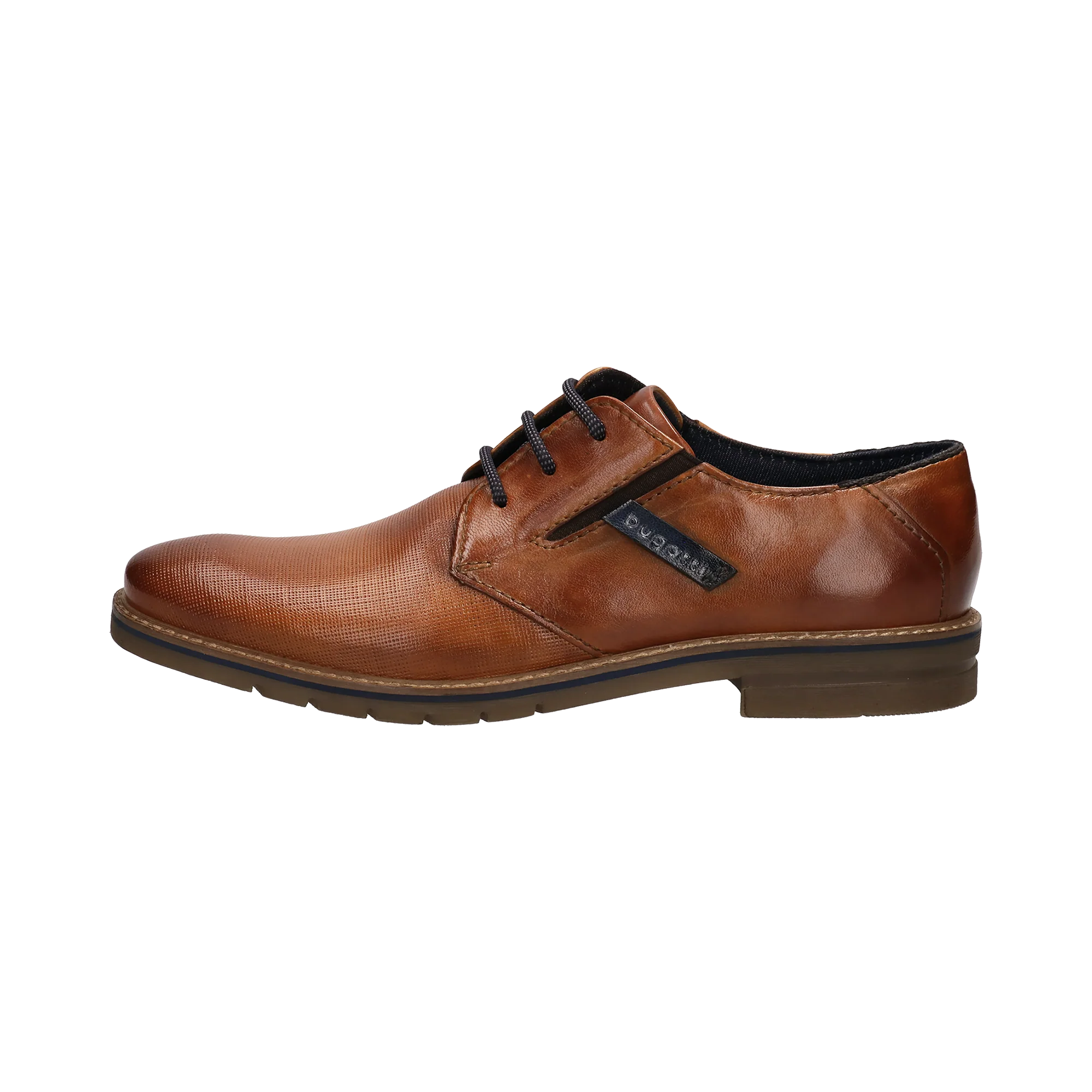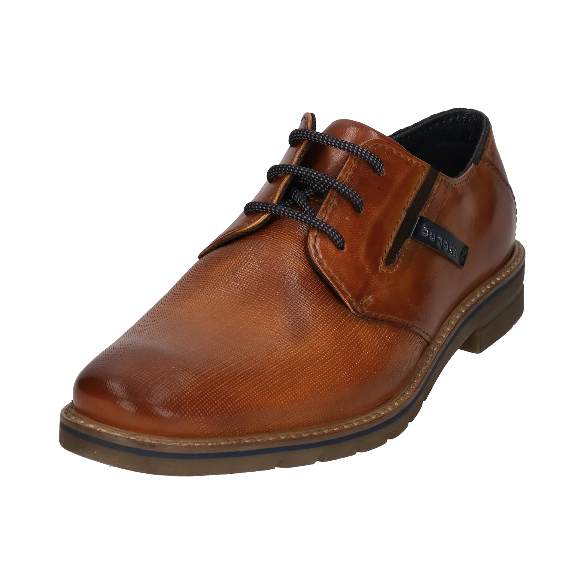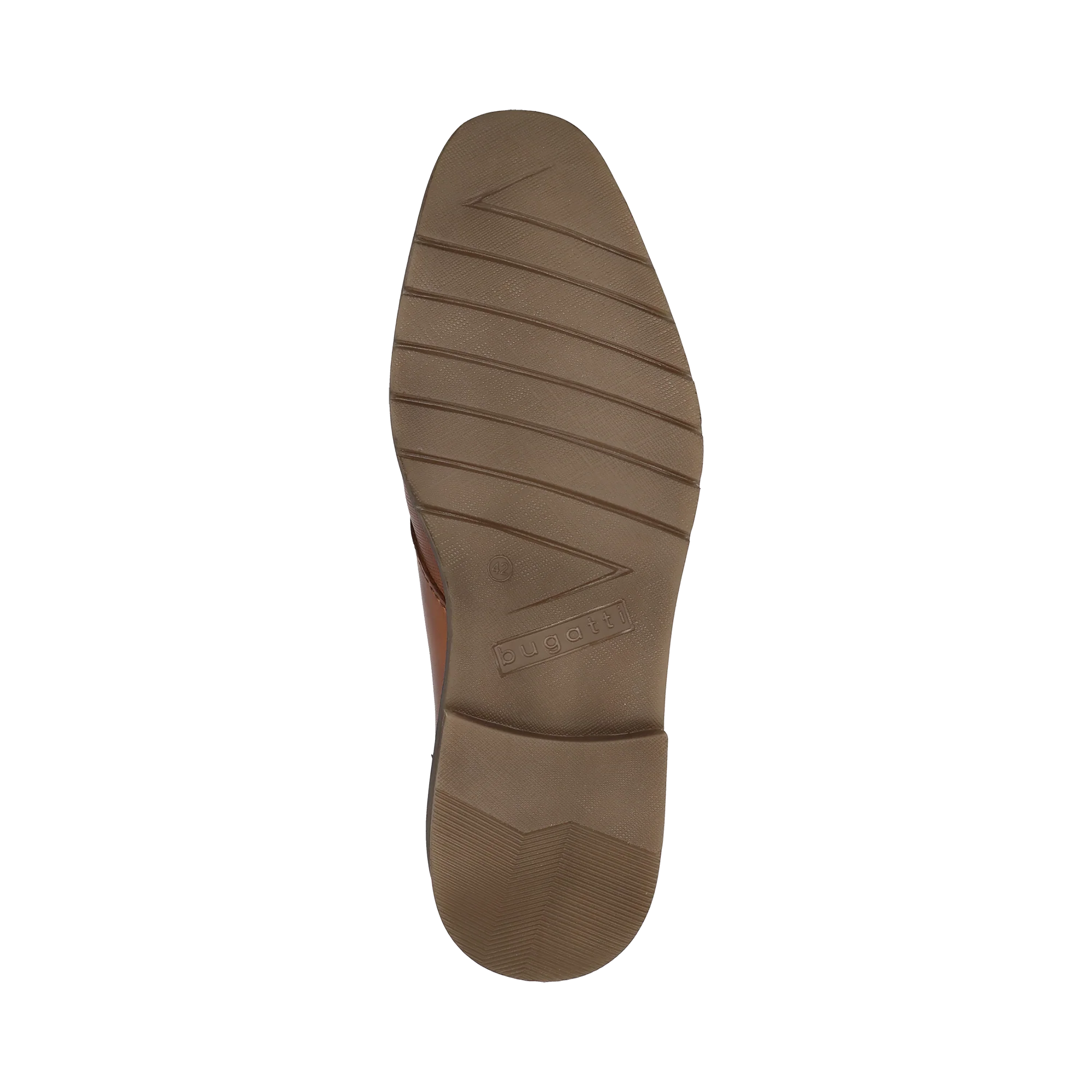 Der bequeme Derbyschuh der Gruppe Merlo in Cognacbraun sorgt durch den weiten Schnitt im Vorderfußbereich für Komfort und Bewegungsfreiheit, während der dunkelbraune Akzent und das händische TwoToneFinishing des Leders einen modischen Schliff verleihen.
