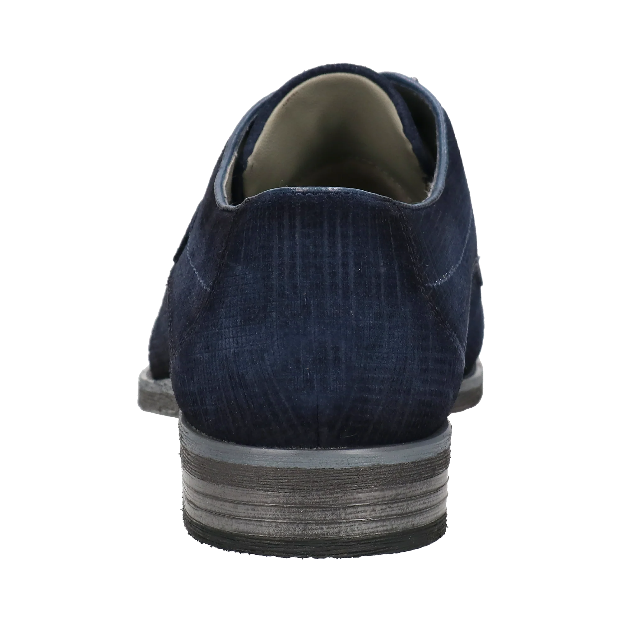 Ein cooleres Paar Businessschuhe gibt es kaum! Produziert aus dunklem Velourleder mit geriffeltem Obermaterial und dünner, sehr haltbarer Sohle. Die leicht grauen Senkel kontrastieren zur Hauptfarbe und das angenähte Textillogo ergänzt auf diskrete Art das elegante Gesamtbild.