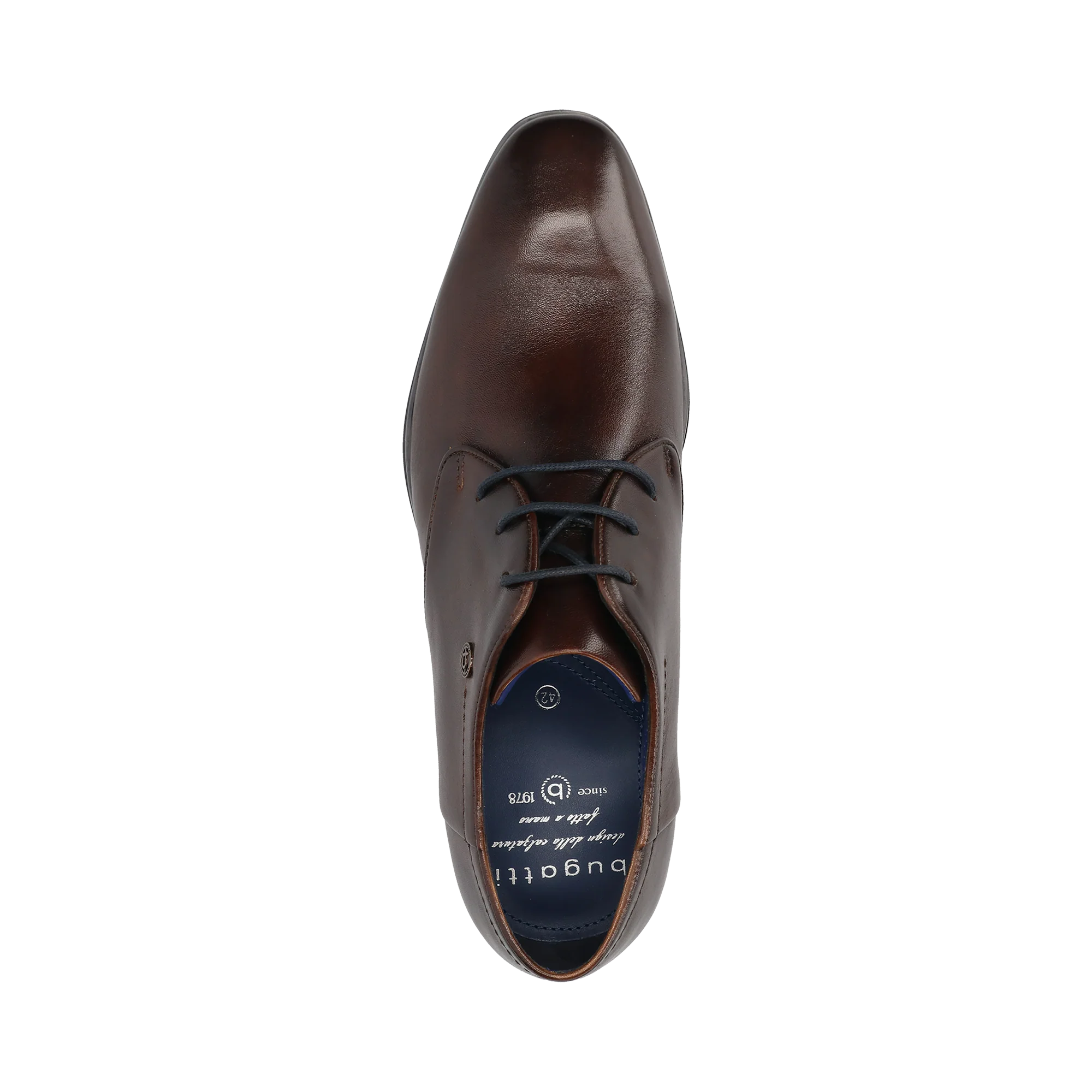 Hightech-Memory-Einlegesohlen dämpfen diese Herren-Derbyschuhe und verleihen ihnen hervorragende Leichtigkeit und Bequemlichkeit. Sie sind komplett aus Leder gefertigt und poliert in feinem Hand-Finish. Diese dunkelbraunen Lederschuhe sind aus hochwertigem Obermaterial gefertigt, passend zu formaler und geschäftliche Garderobe.