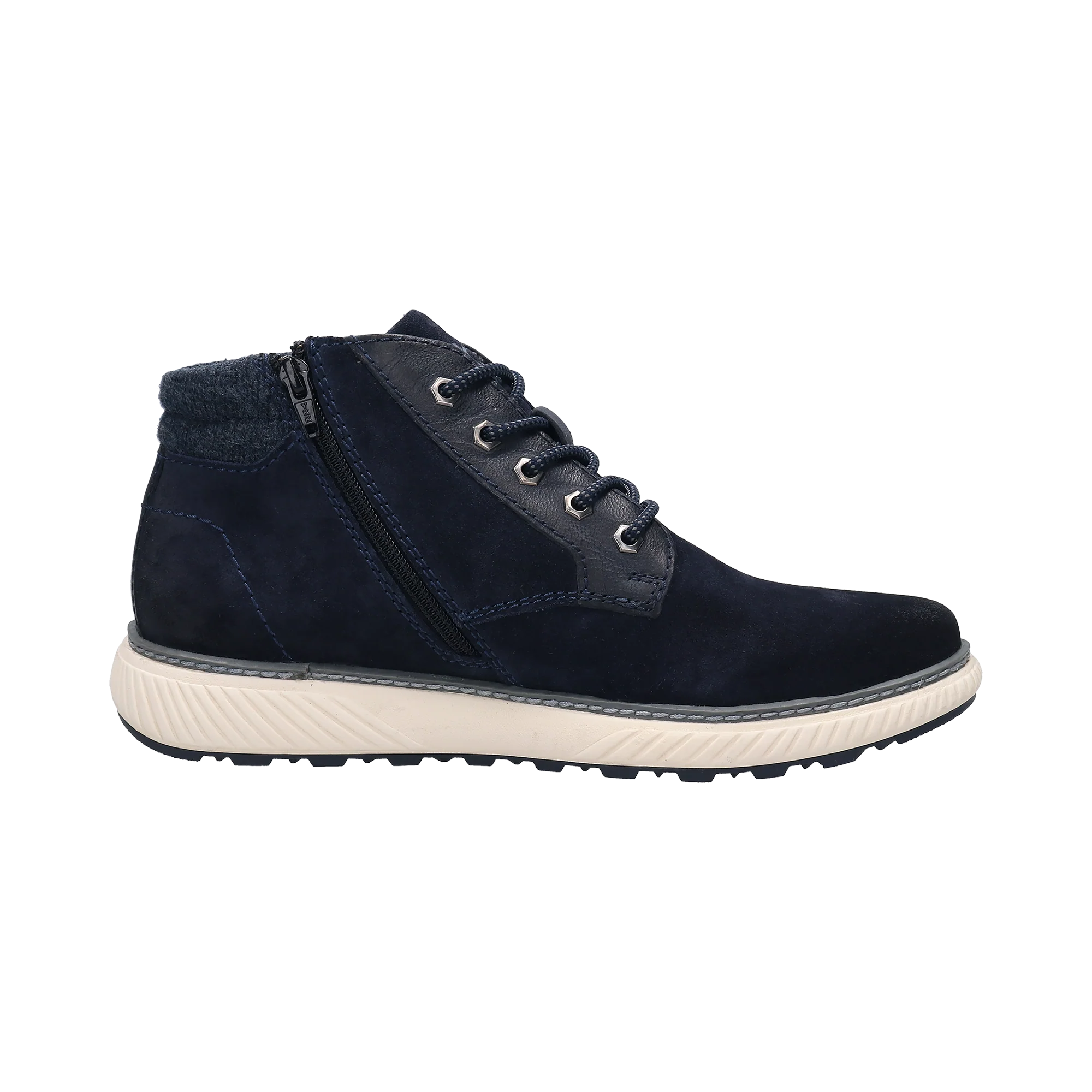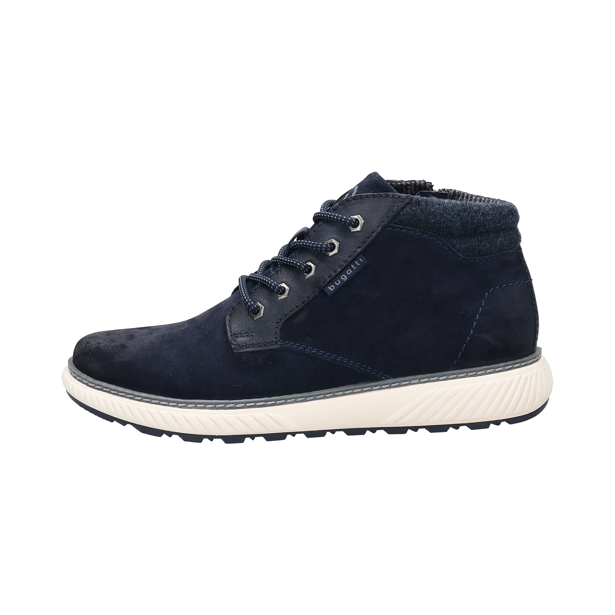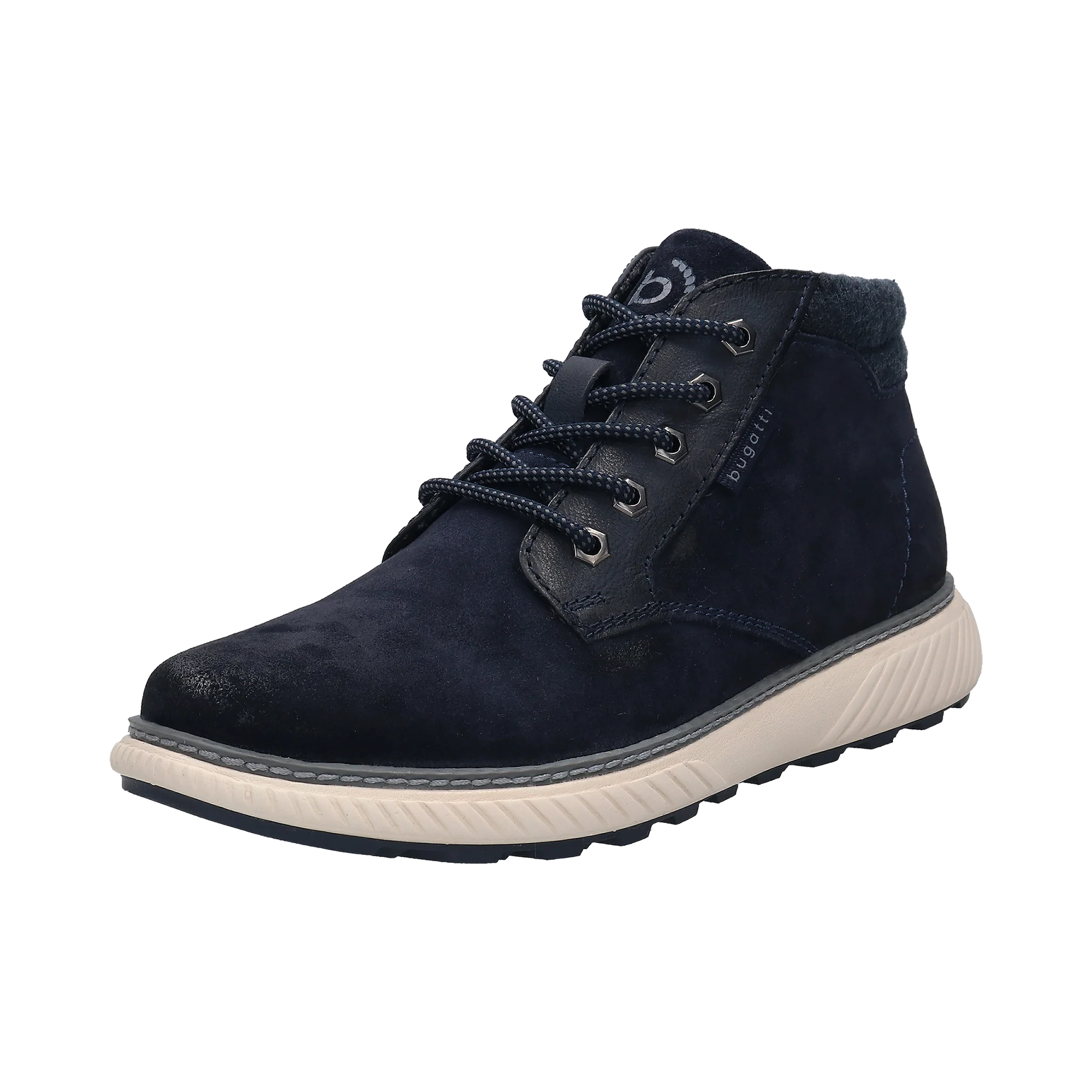 Simple Linien, cooles Design – Der blaue Pramo-Schnürer lässt sich dank seiner Schnittform leicht tragen und sorgt für den optimalen Tragekomfort durch das Wechselfußbett und die Einlage mit Memory-Funktion, während der Used Look und die weiße Keilsohle ihm einen trendigen sportlichen Touch verleihen.