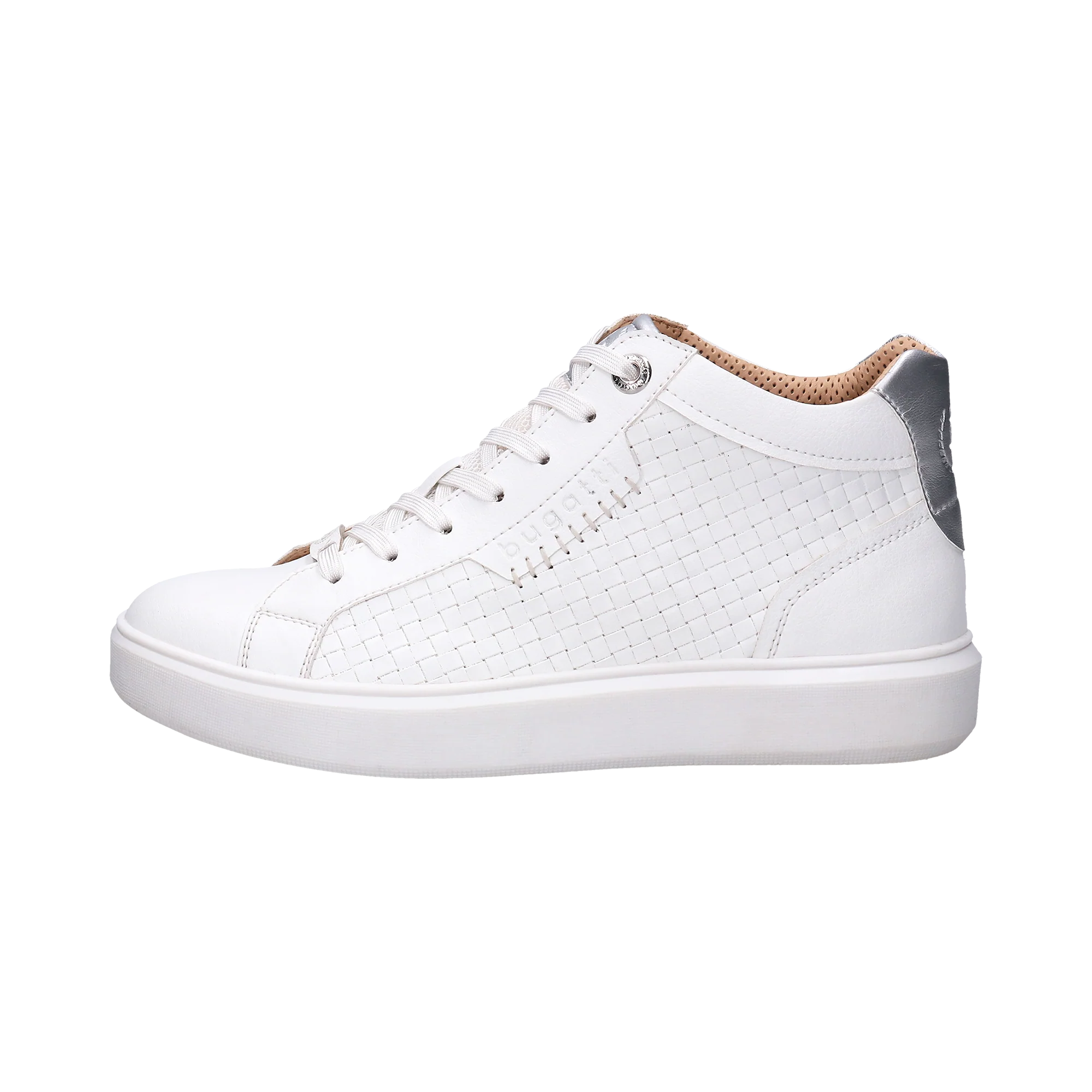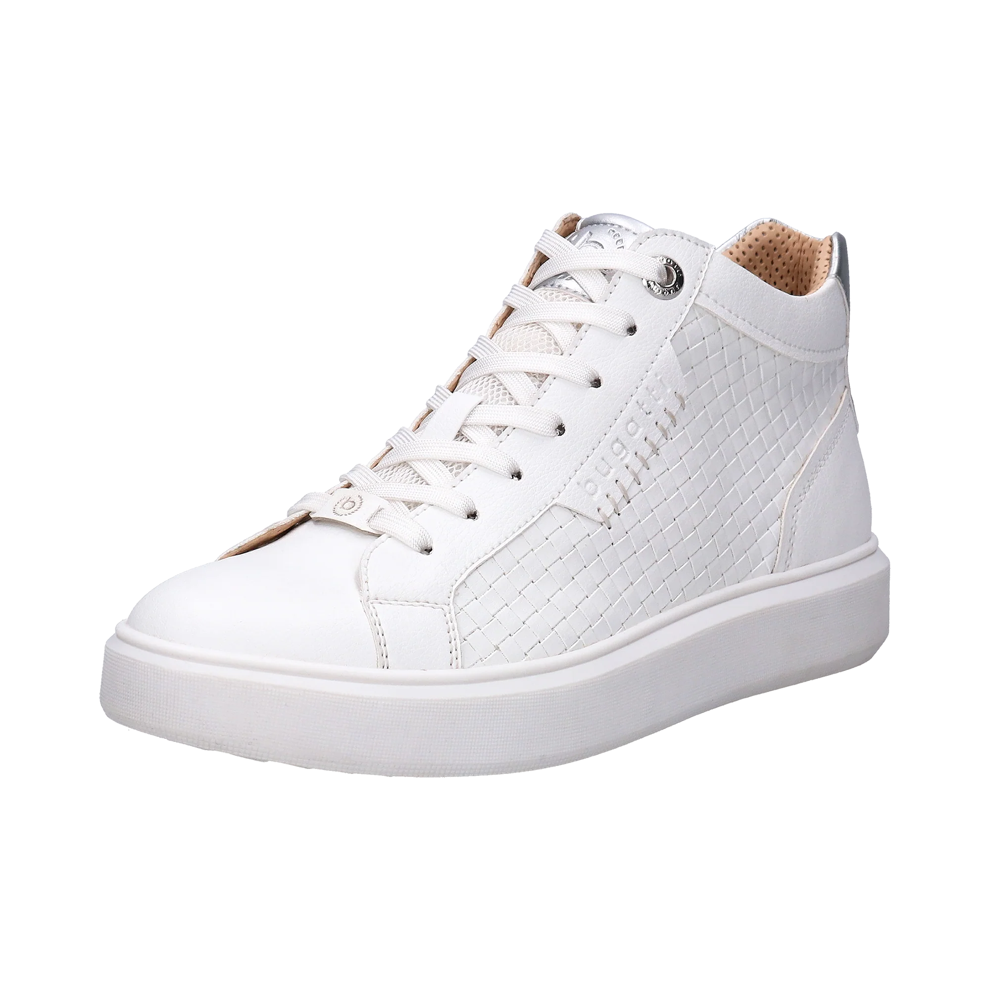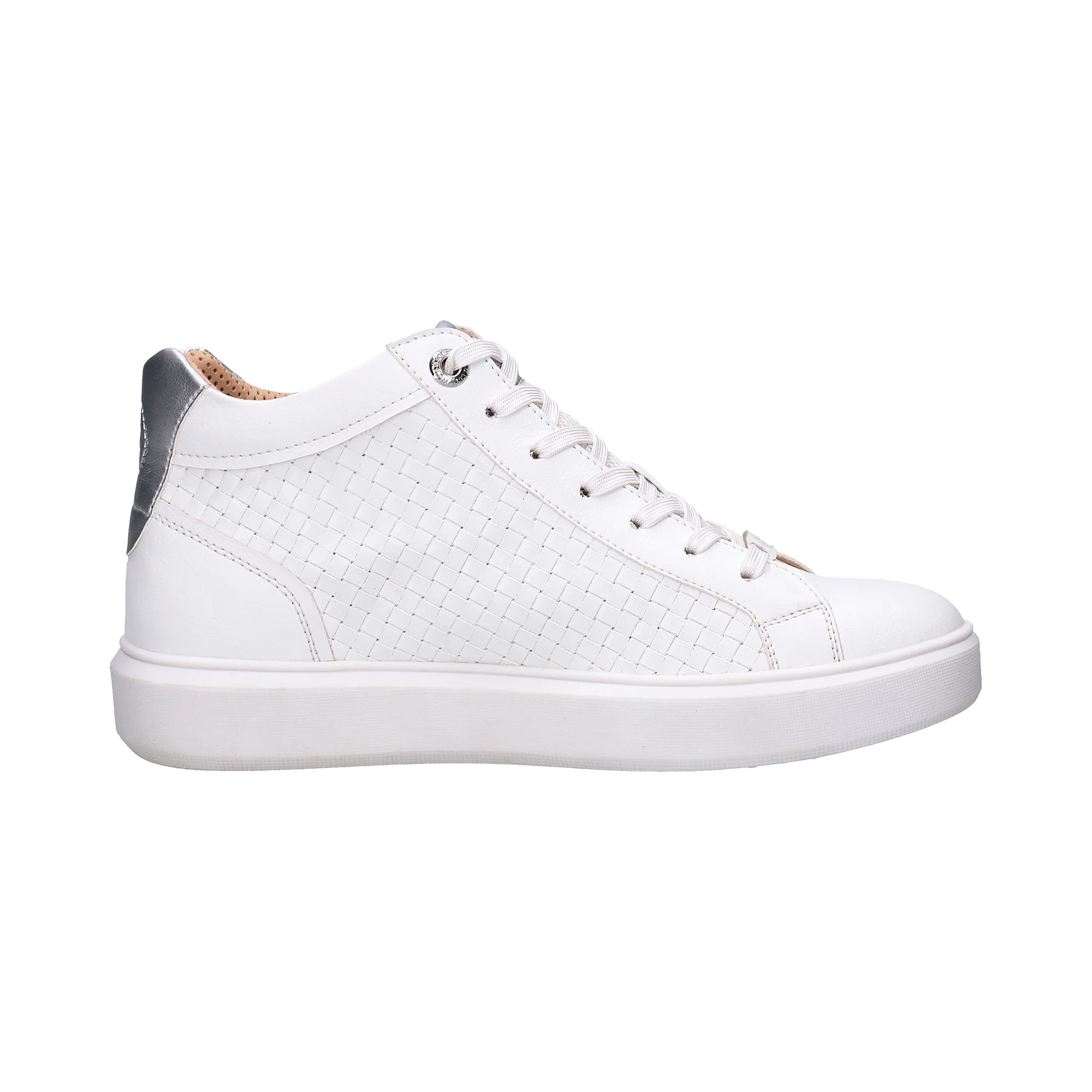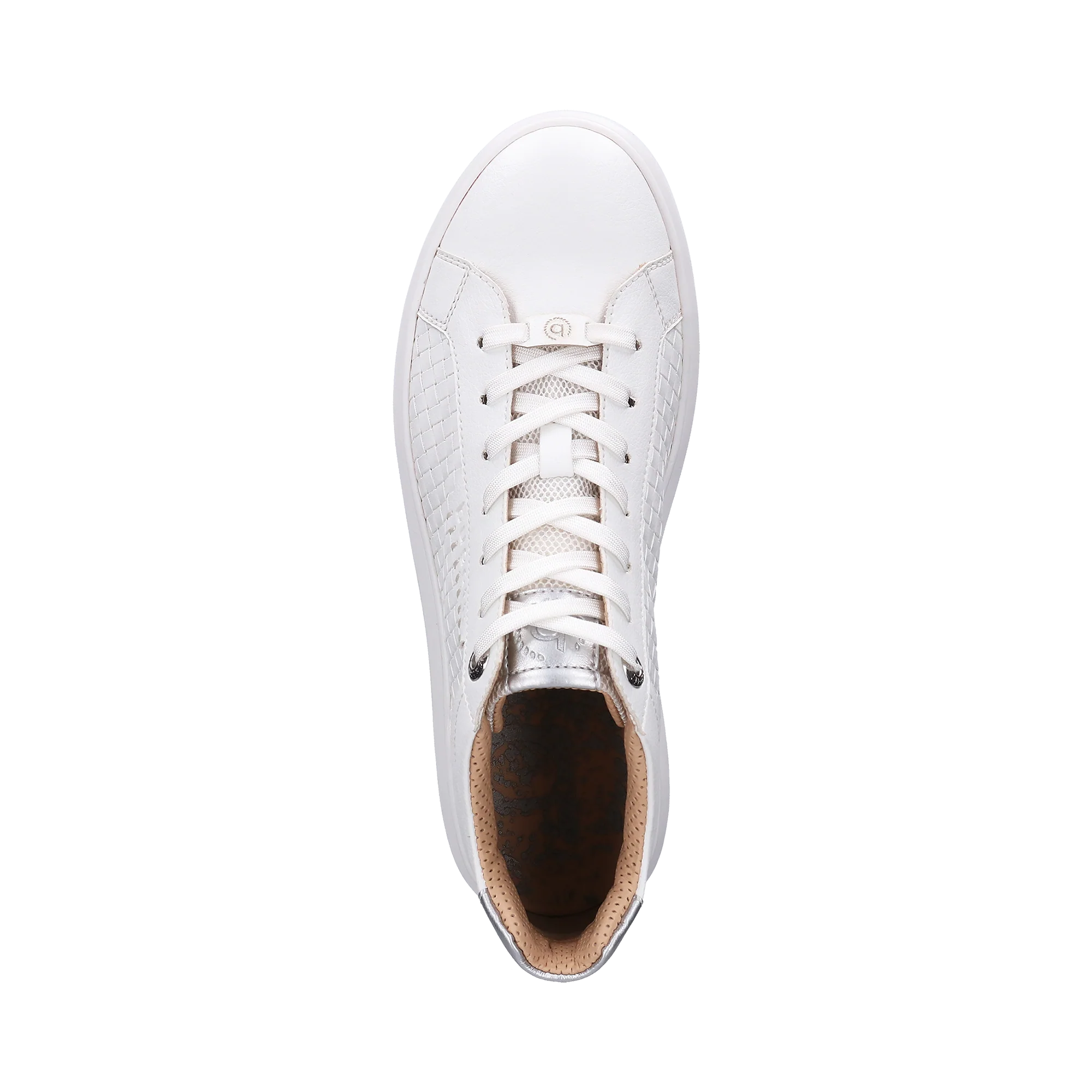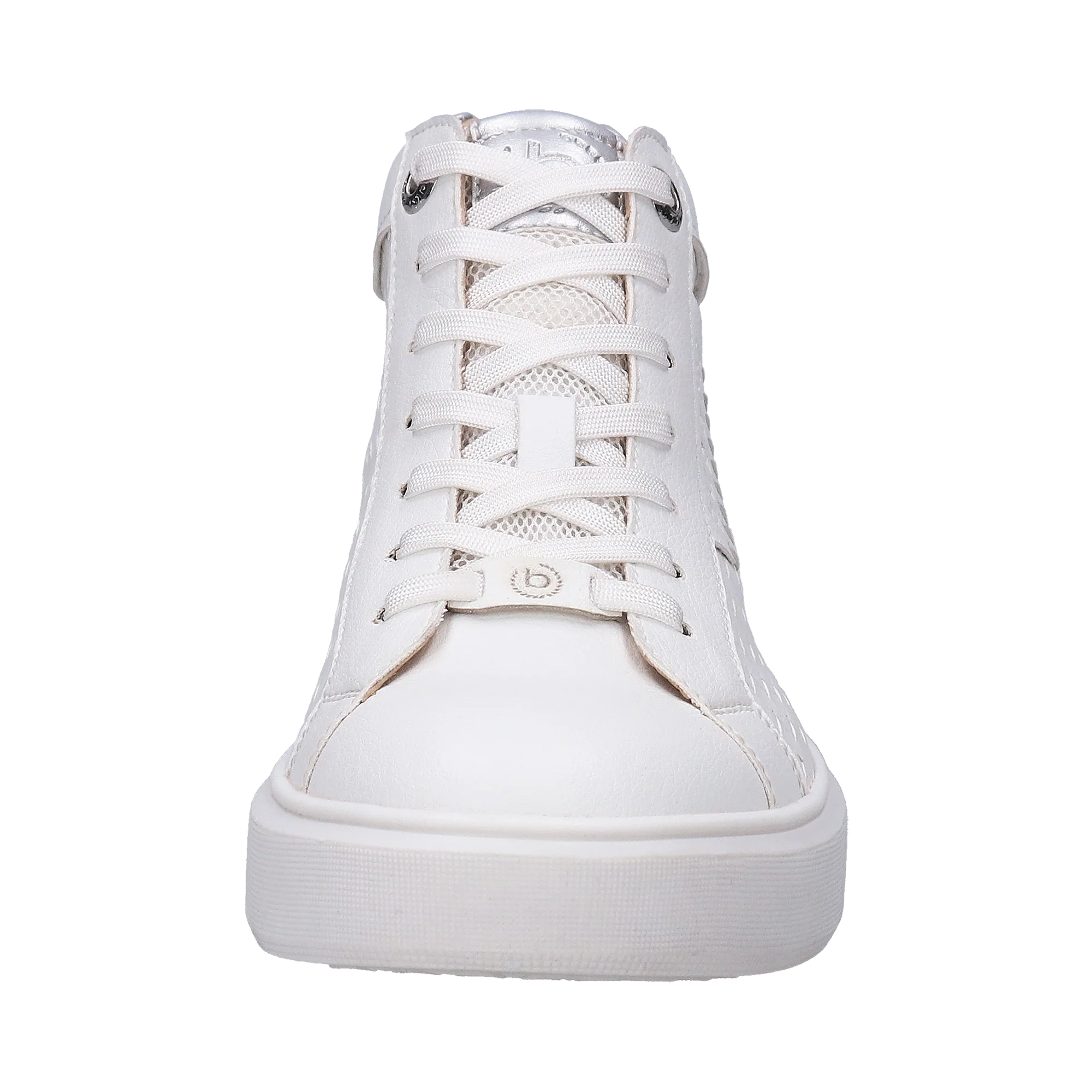 Sportlich lässig konzipiert bestehen diese Sneaker Boots aus weißem Leder mit Brandingeffekt und silberner Fersenkappe als Kontrast. Sie sind ausgestattet mit eleganter Schnürung und leichter Sohle für ein insgesamt optimales Komfortgefühl.