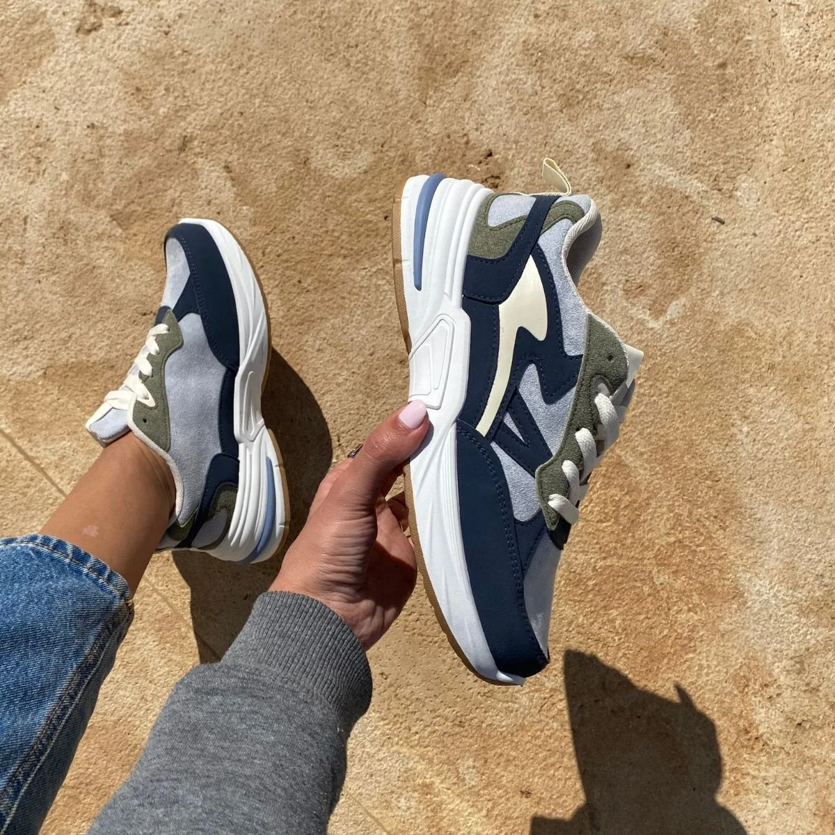 Basket bi-matière couleur bleu. Disponible en plusieurs coloris.