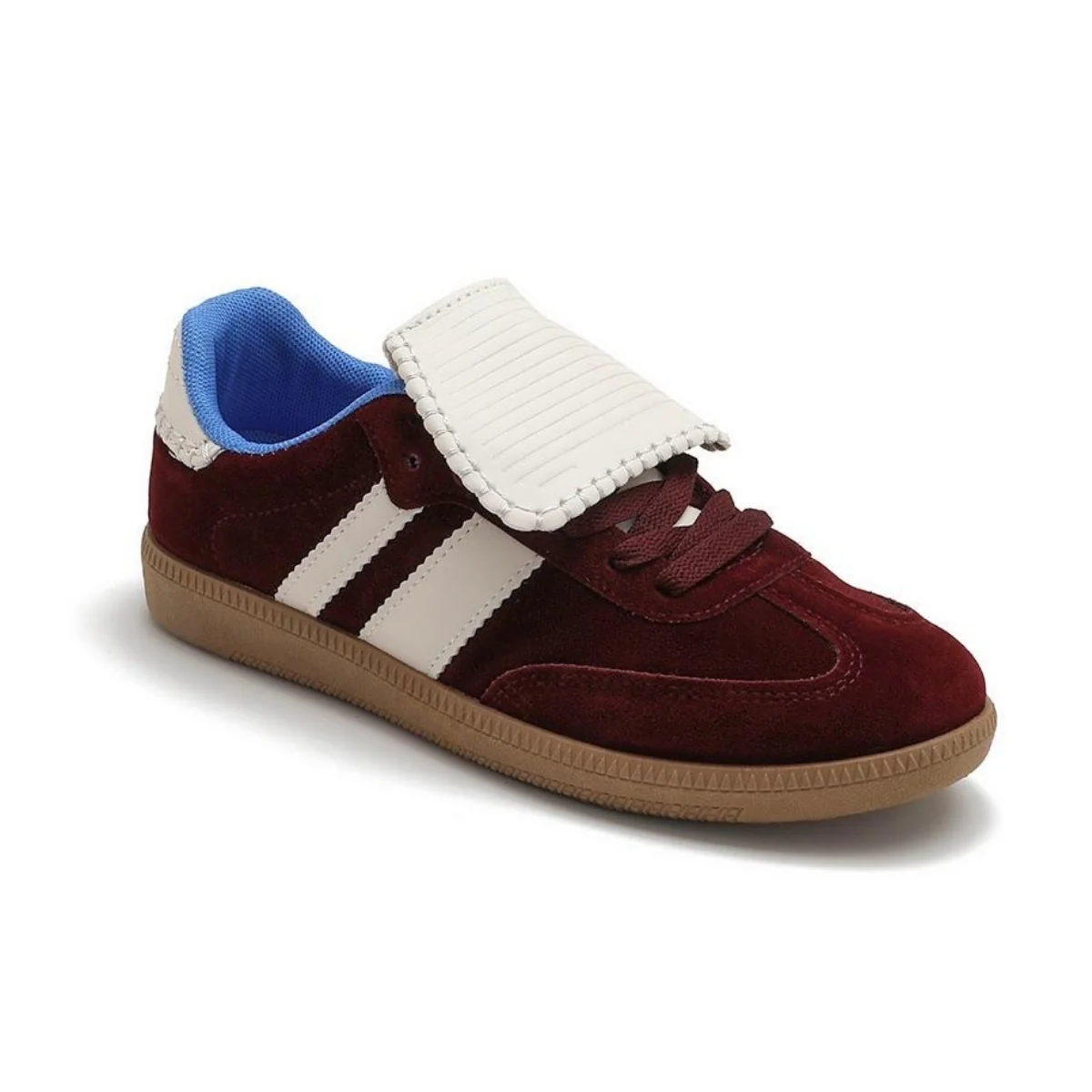 Basket style samba en daim bordeaux et cuir synthétique blanc écru.