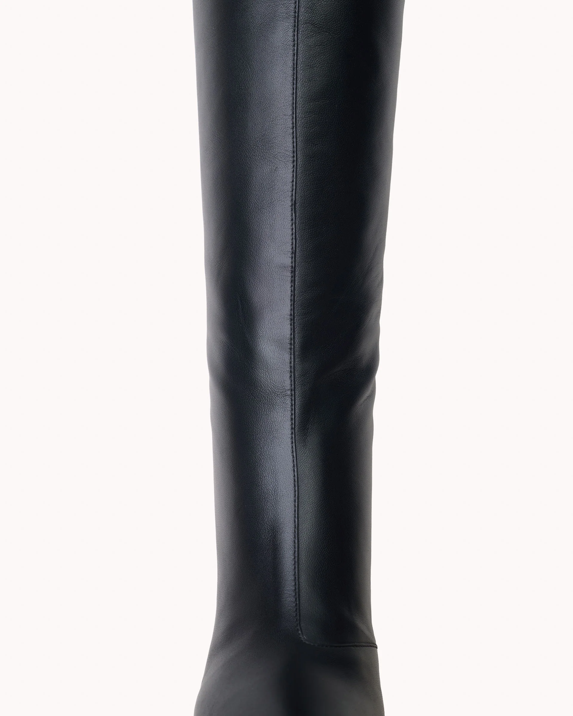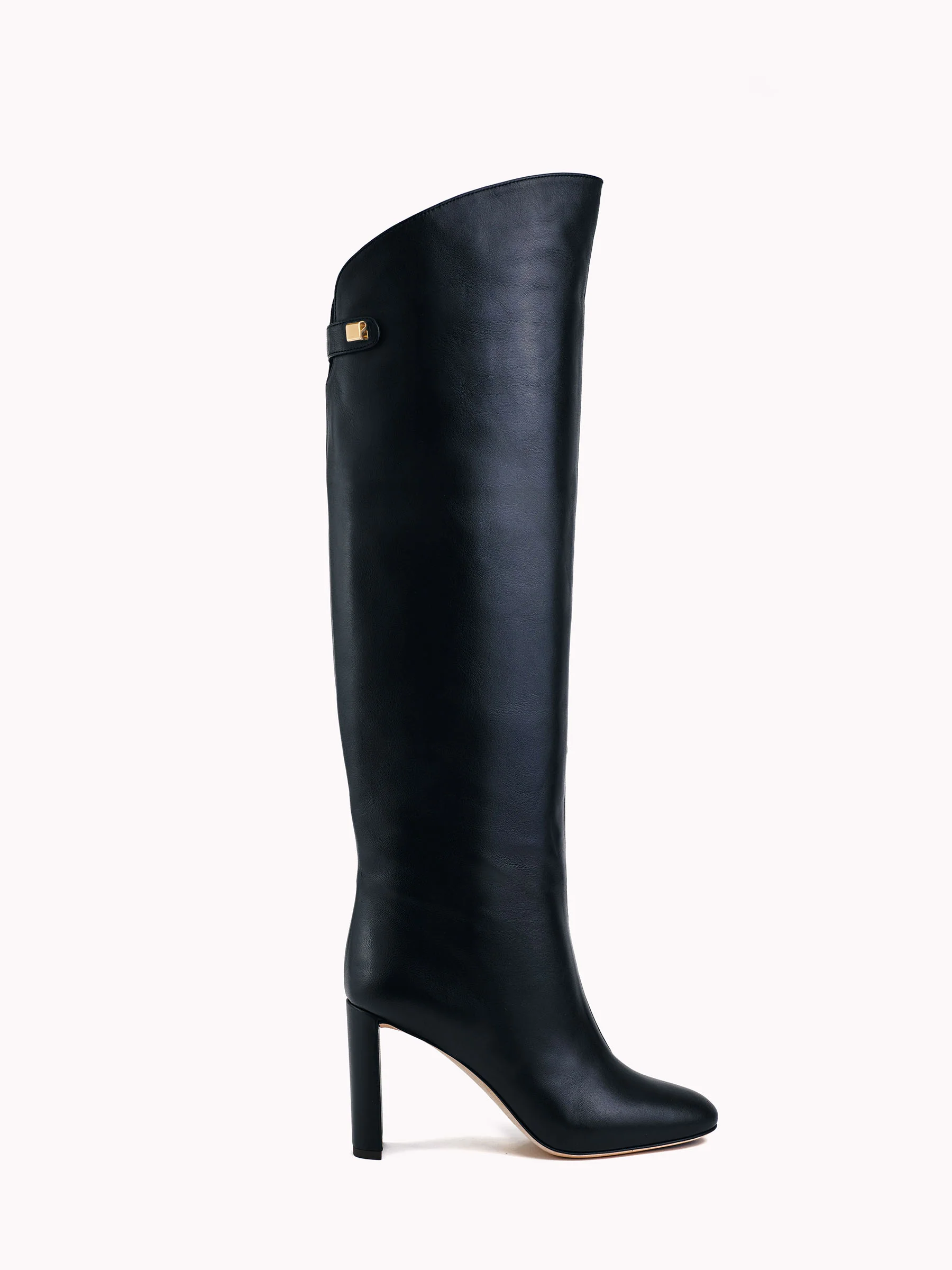Notre botte emblématique monte jusqu’au genou et présente un bout rond féminin. Confectionnée en cuir Nappa souple, la Carolina s’élève jusqu’au genou à l’avant et plonge élégamment à l’arrière pour rejoindre notre ornement doré signature. À la fois élégante et sportive, elle est conçue pour un style moderne au quotidien.
