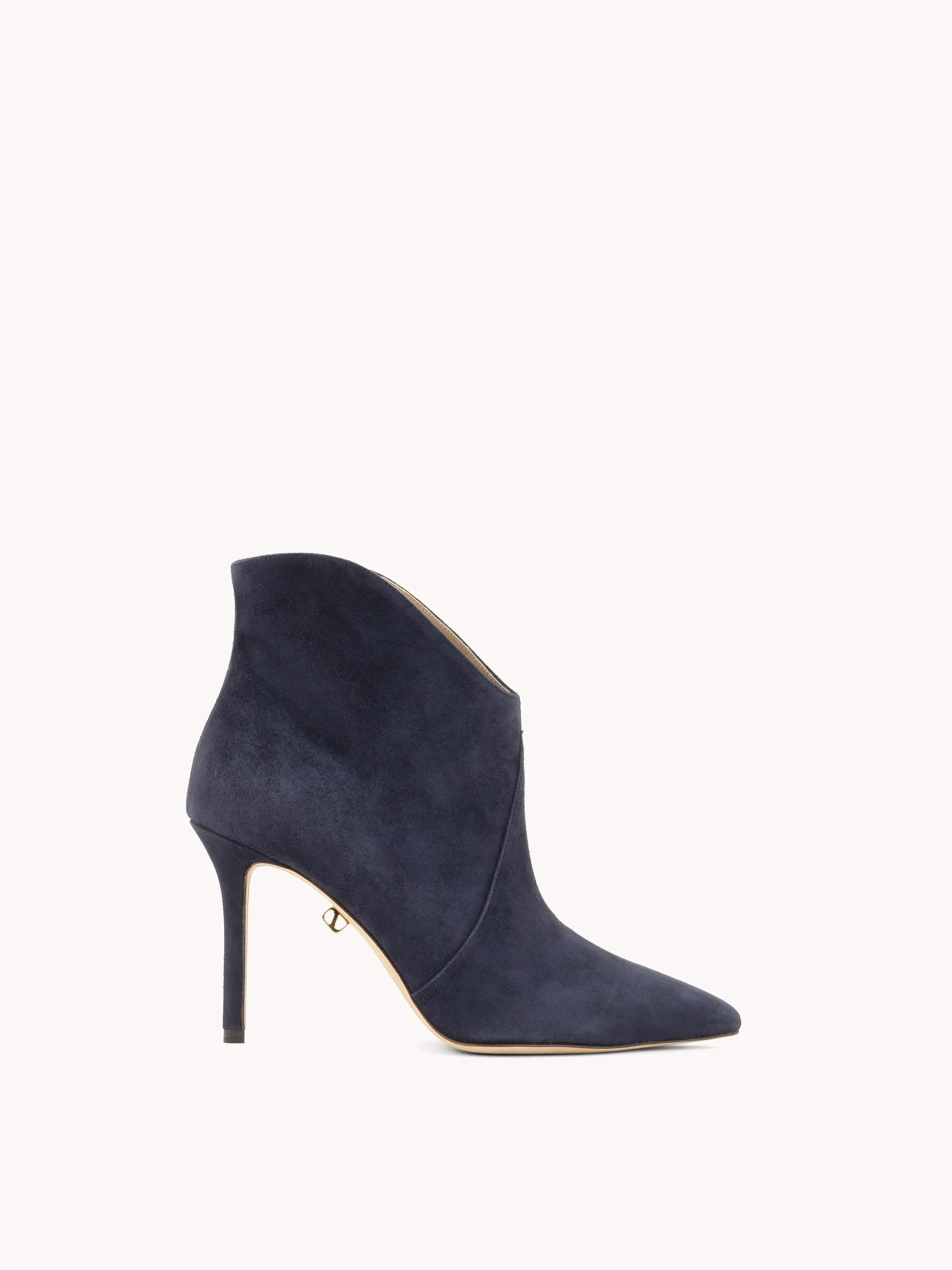 Cette bottine basse sensuelle a un bout pointu féminin et est montée sur un élégant talon aiguille fin. L’Astrid est faite de daim doux comme du beurre et arbore bien sûr notre ornement doré emblématique sur la semelle.