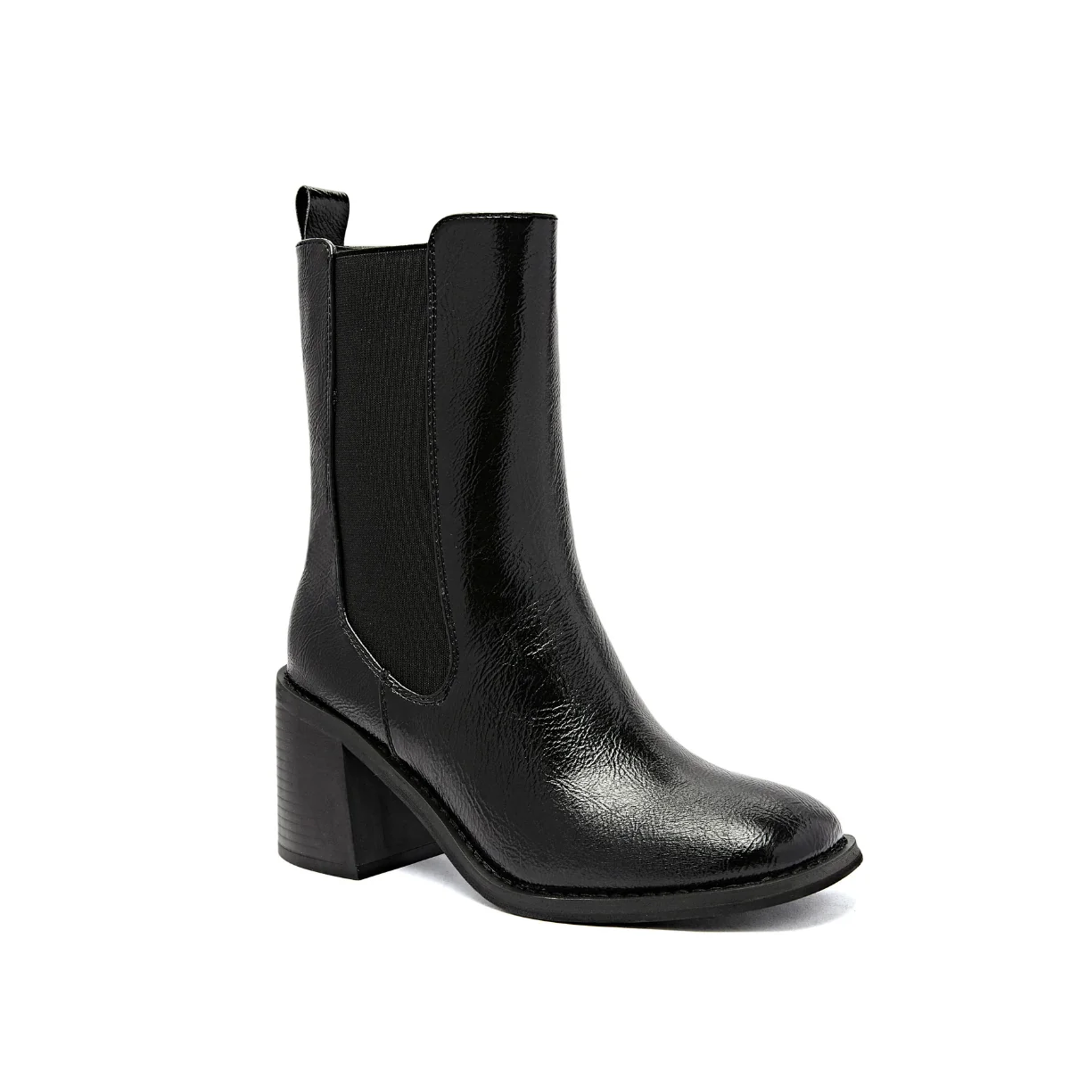 Bottines à talons en cuir synthétique couleur noir.