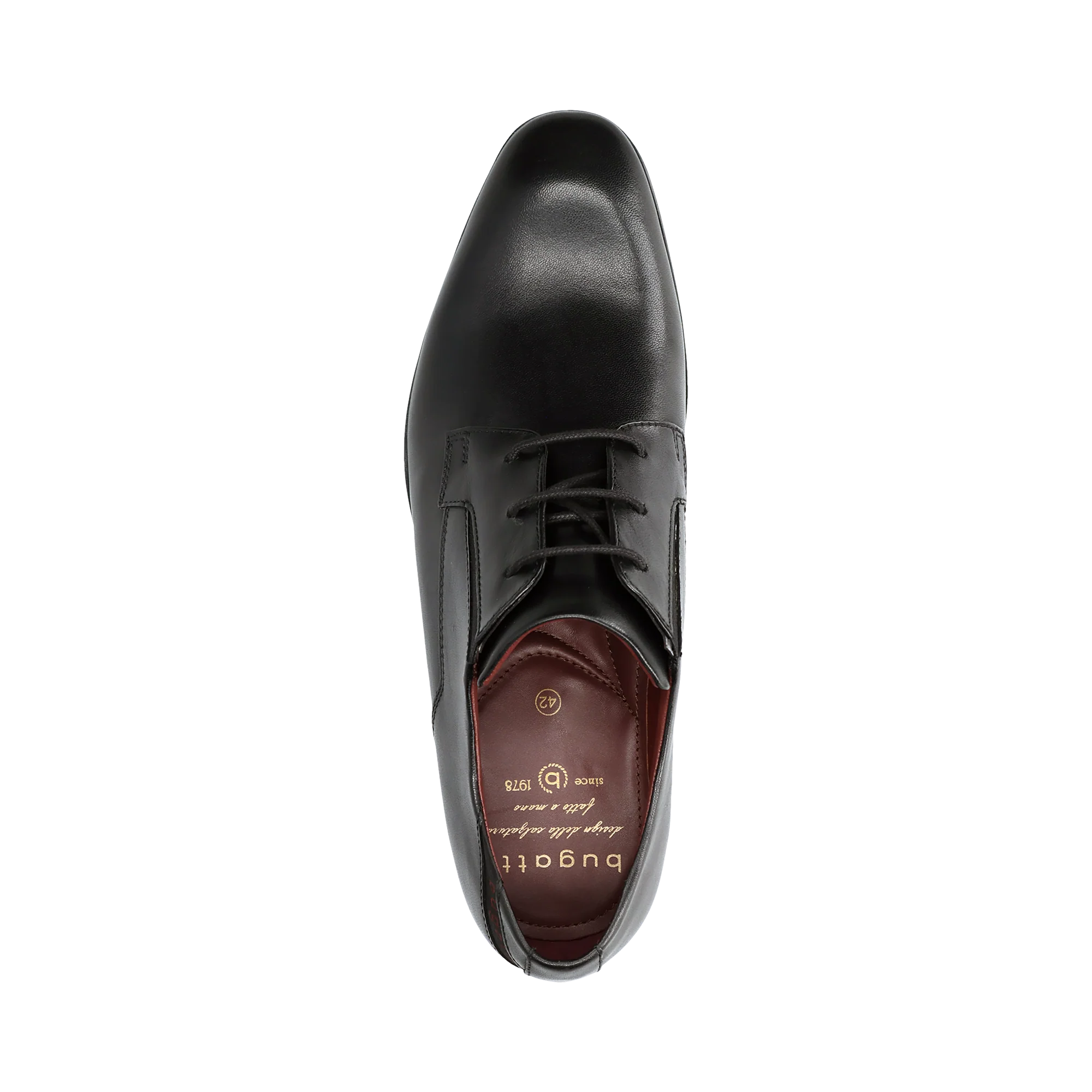 Setzen Sie ein Statement mit diesen edlen schwarzen Schnürschuhen aus hochwertigem Leder. Das minimalistische Design passt perfekt zu jedem Business-Outfit und sorgt für einen eleganten, stilvollen Look. Diese vielseitigen Schnürschuhe sind ein Muss für jede Garderobe und bieten sowohl Stil als auch Substanz, damit Sie immer bequem und souverän auftreten können.