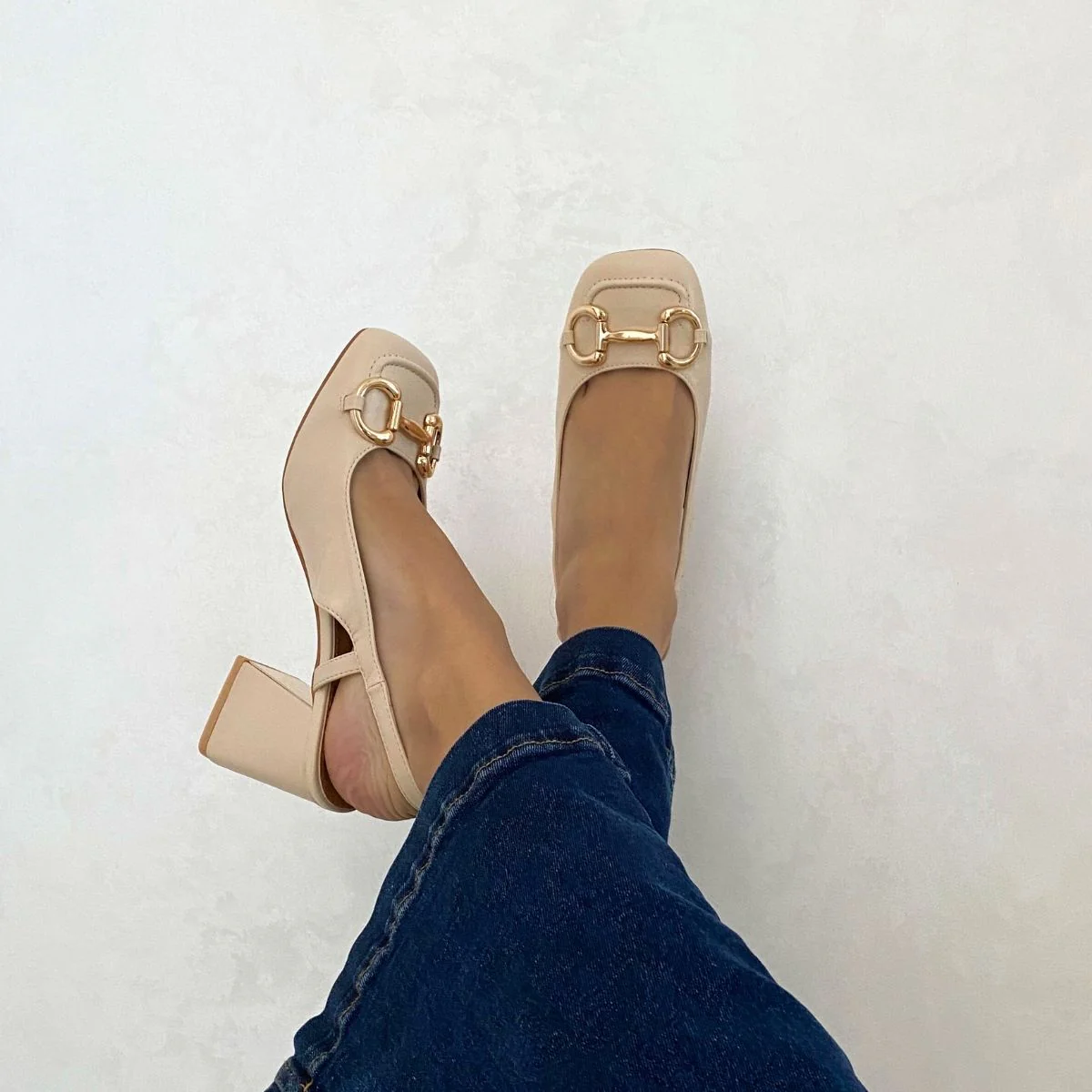 Escarpin mi talons couleur beige.