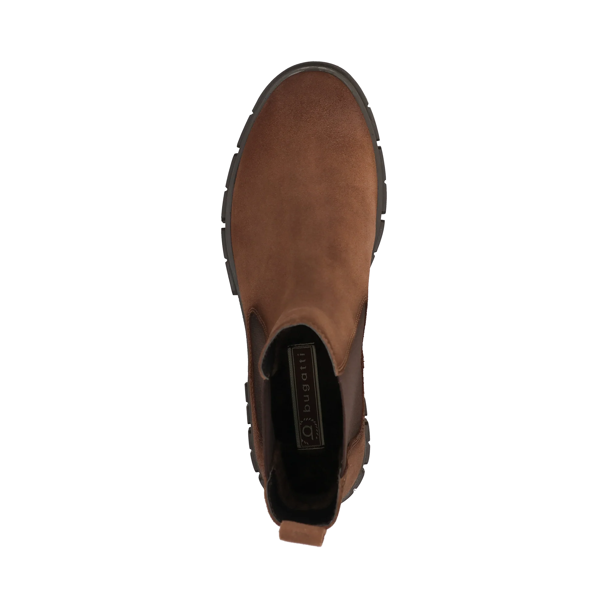 Die Bugatti Chelsea Boots aus braunem Leder sind eine vielseitige Wahl für jede Gelegenheit. Mit ihrem praktischen elastischen Bund vereinen sie Komfort und Eleganz. Der Textilbesatz sorgt für einen edlen Touch und die Sohle für sicheren Halt.
