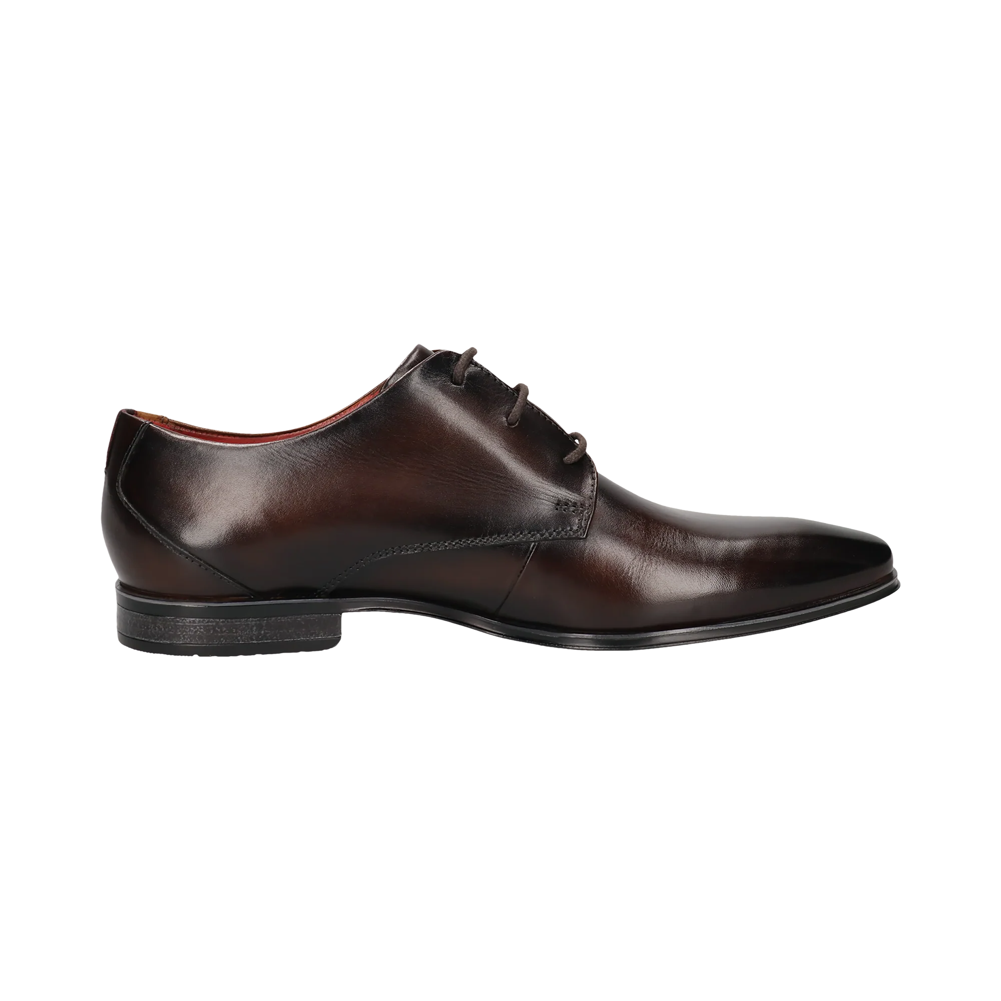 Die eleganten Business-Schuhe von bugatti aus schwarzem Leder haben eine schmale Laufsohle, die für einen glatten und eleganten Look sorgt. Mit der minimalistischen Logoprägung sind diese Schuhe die perfekte Ergänzung zu dunkelblauen Anzügen im Büro.