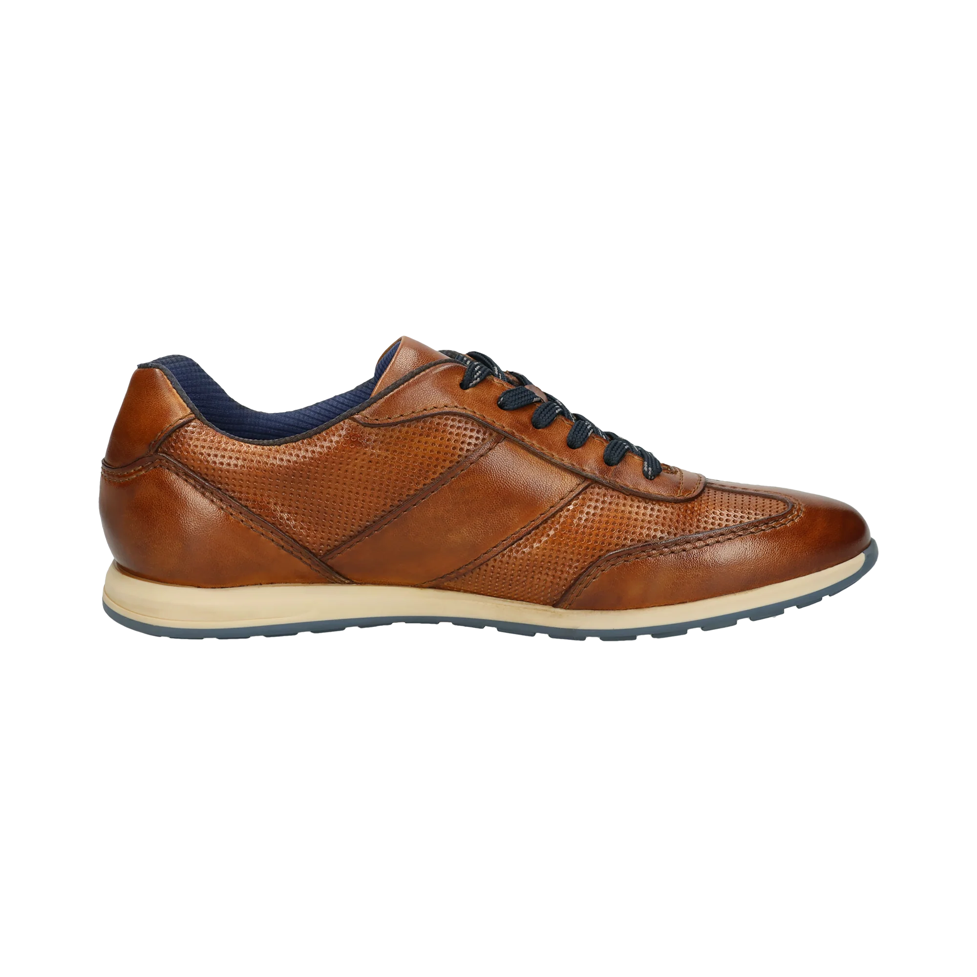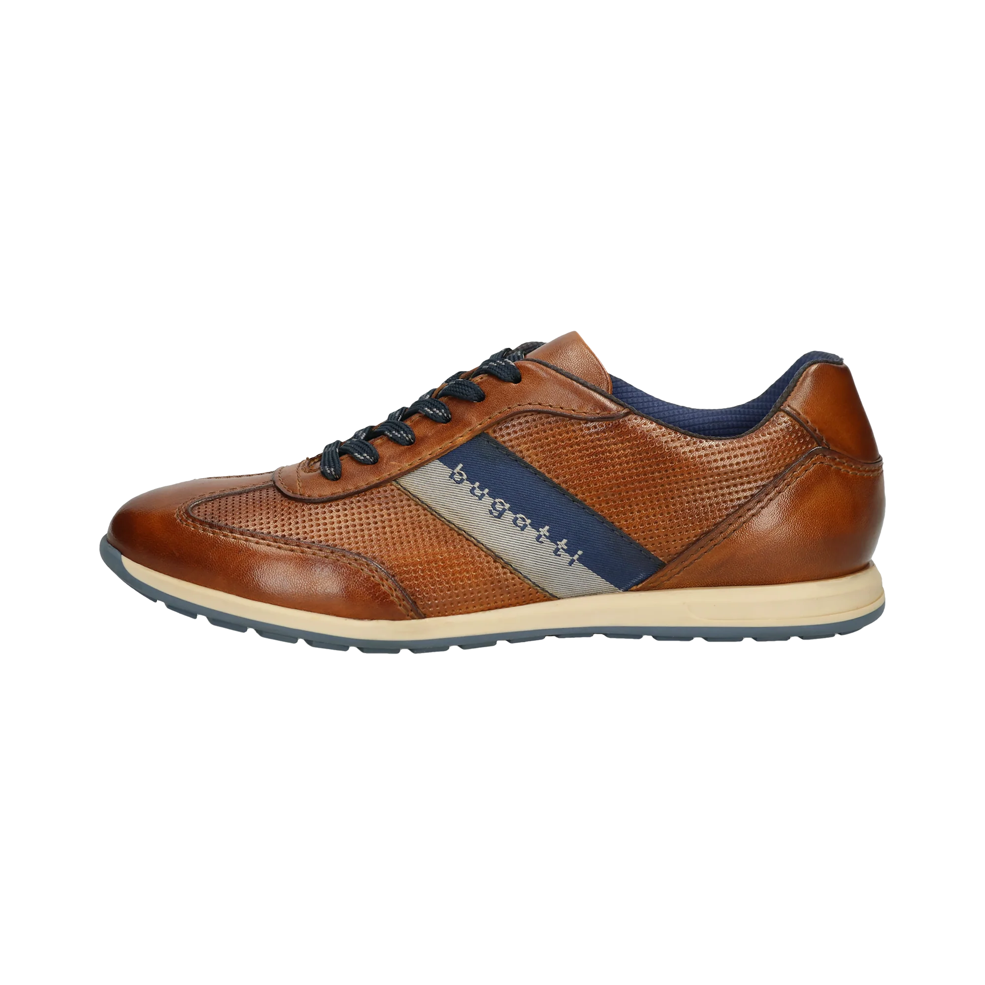 Schuhe machen einen Teil des Stils aus. Dieser cognacfarbene Sneaker mit modernen Details verleiht Ihrem Büroalltag einen coolen Touch. Neben dem Design steht auch der Komfort im Vordergrund und dafür haben wir mit Komfortmerkmalen wie der zuverlässigen TR-Sohle oder der bugatti Care Impregnate Funktion gesorgt.