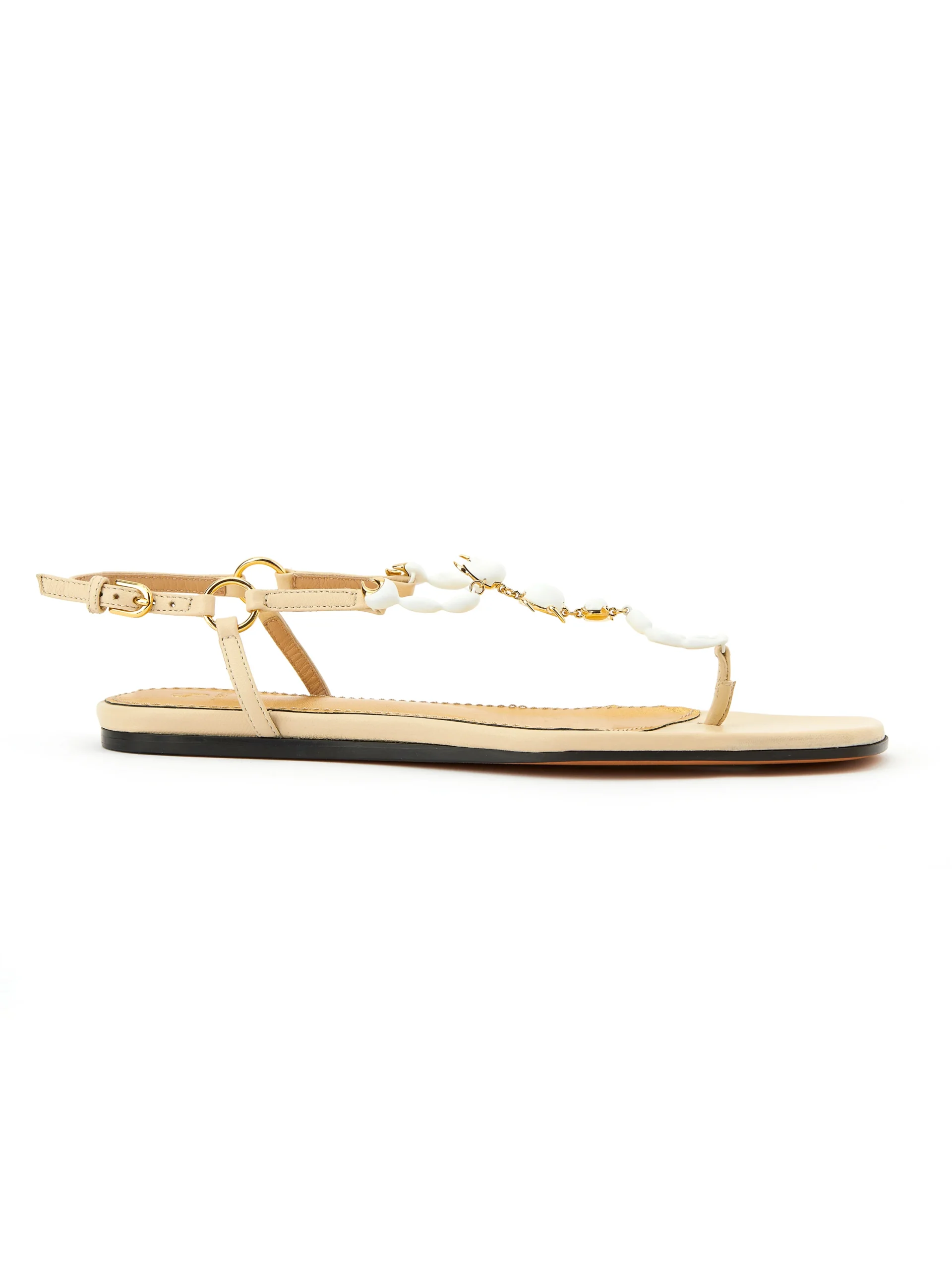 Ces sandales ornées d’un scorpion sont dotées d’une délicate bride de cheville réglable et sont confectionnées en cuir nappa souple crème. Fabriquées par des artisans italiens, elles arborent notre accessoire emblématique en émail : un scorpion.