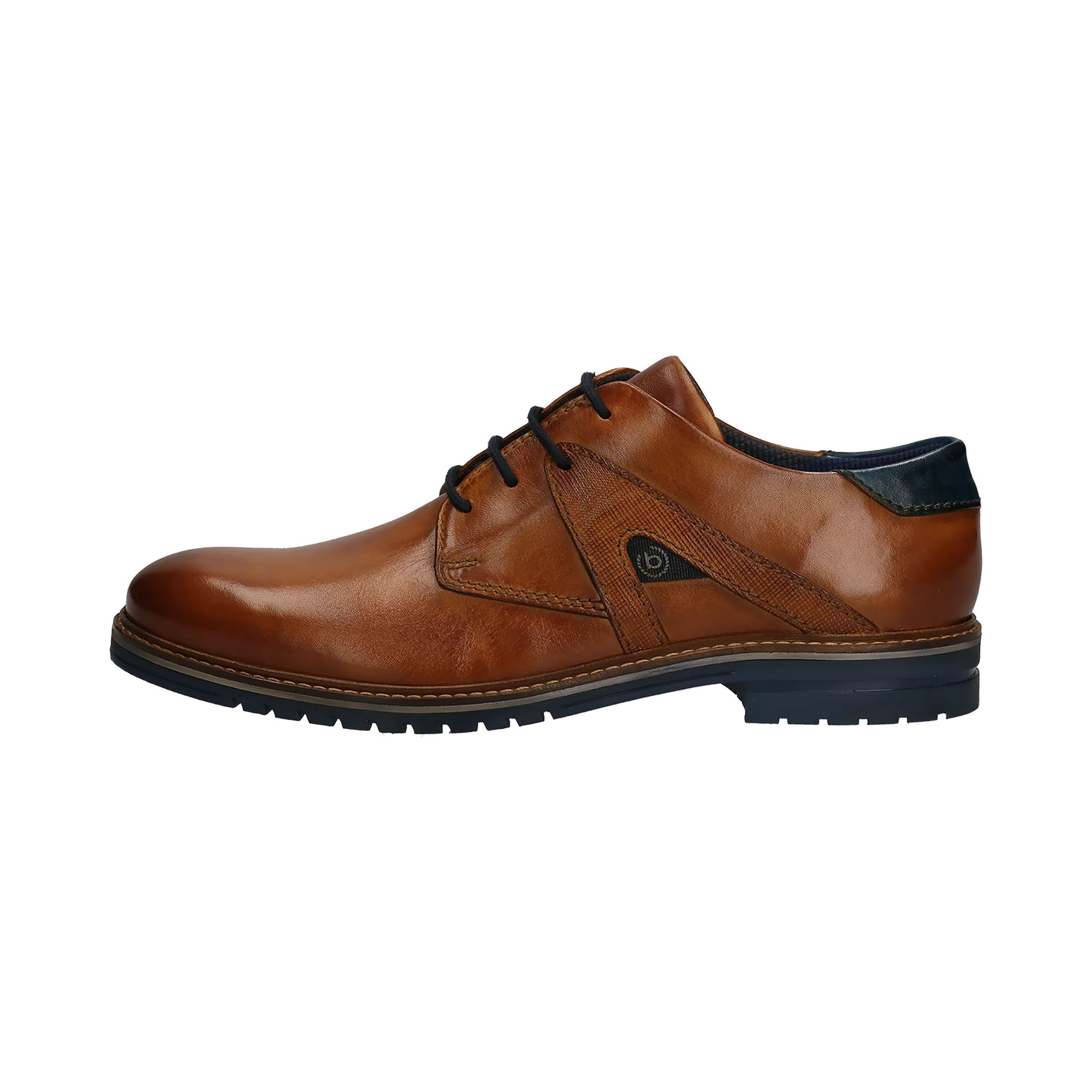 Freizeitschuhe mit Schnürung sehen mit kognakfarbigem Hand-Finish immer großartig aus. Dieses bugatti Paar besteht aus hochwertigem Leder mit blauen Fersenkappen und Sohlen. Nicht zuletzt aufgrund ihrer Flexibilität können sie zu lässigen Outfits über viele Jahre getragen werden.