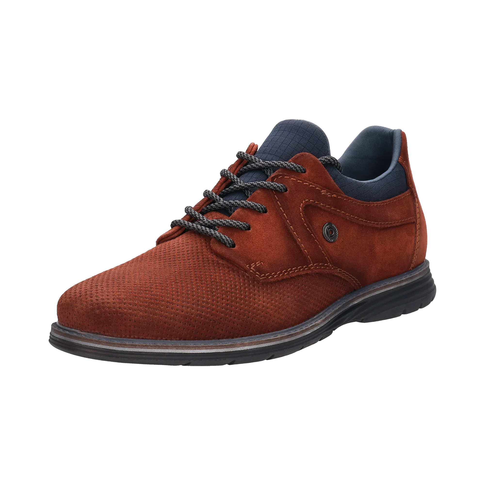 Diese orange-roten Schuhe im Used Look mit leicht auswechselbarem Fußbett spiegeln aktuelle Modetrends wider. Ansprechende, perforierte Obermaterialien der Wildlederschnürer werden aufgepeppt durch blaue Stichnähte und eine dunkle Sohle.