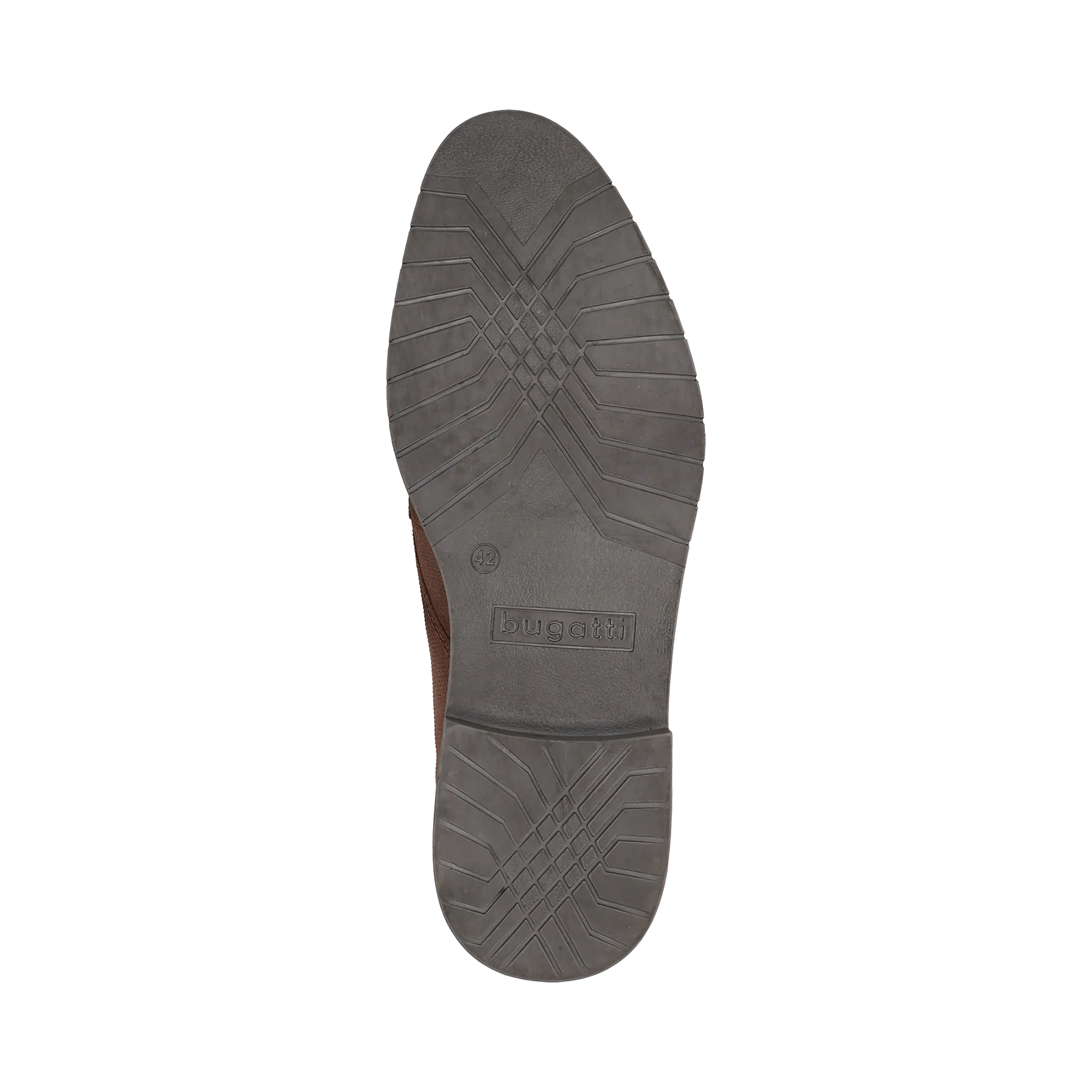 Beige bugatti Schnürschuhe bestehen aus geprägtem Velourleder mit taupefarbener Senkelleiste und einer Fersenkappe als Stilelement. Die Sohlen haben dank ihrer Riffelung Griff und bieten Stabilität. Perfekt zu lässigen Freizeitlooks wie Jeans und weißem T-Shirt.
