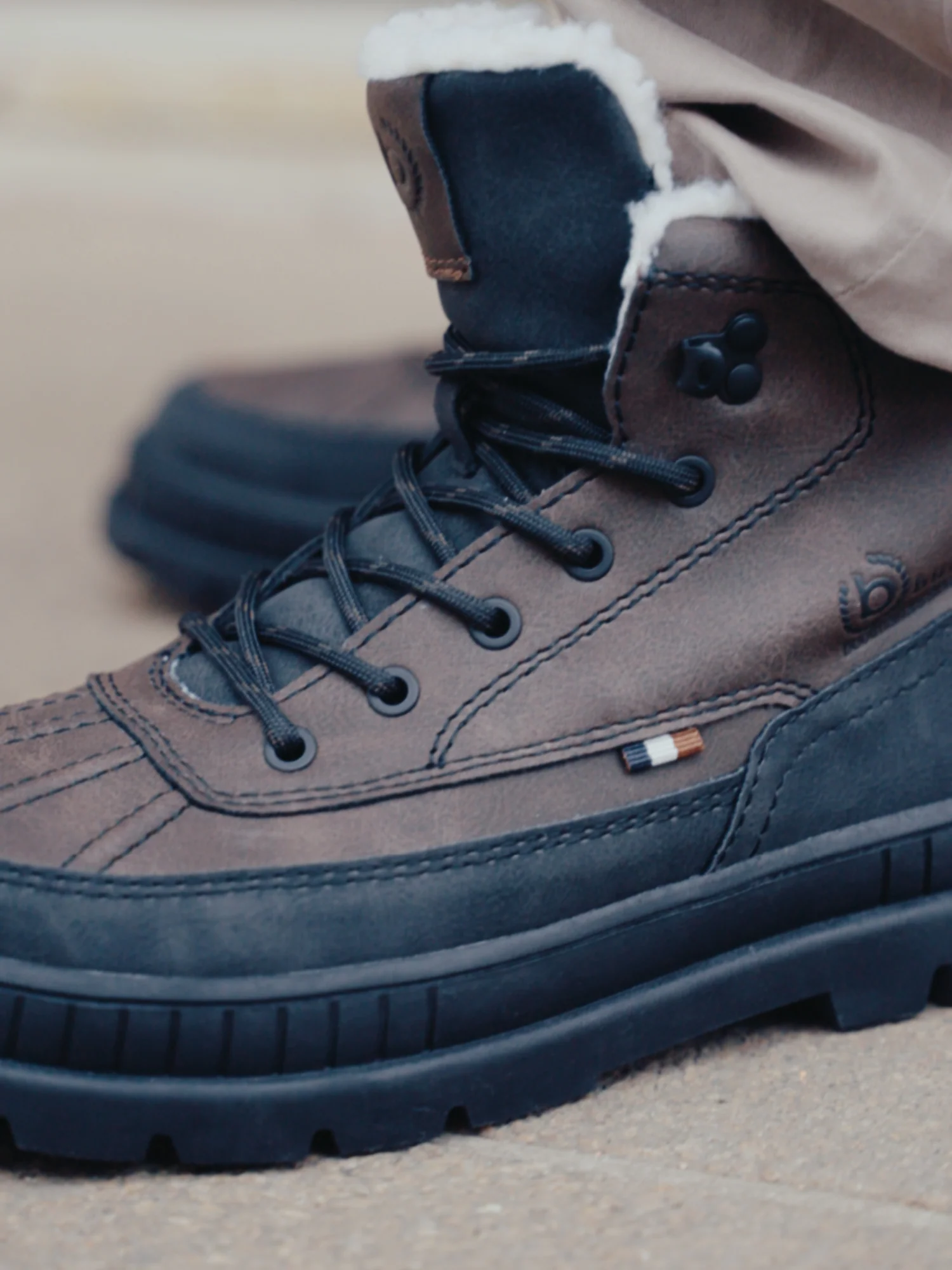 Auf einem markanten Leisten gefertigt, setzen diese braunen Boots mit schwarzen Akzenten moderne Nahtführungen und dezentes Branding gekonnt in Szene – handwerklich detailreich umgesetzt. Mit klaren Linien und klassischen Akzenten sind sie ideal für Casual-Friday-Looks oder entspannte Wochenendausflüge geeignet. Weich gepolstert, mit warmem Futter und komfortablem Schaftabschluss bieten sie angenehmen Tragekomfort. Ein modisches Statement für stilbewusste Abenteurer.