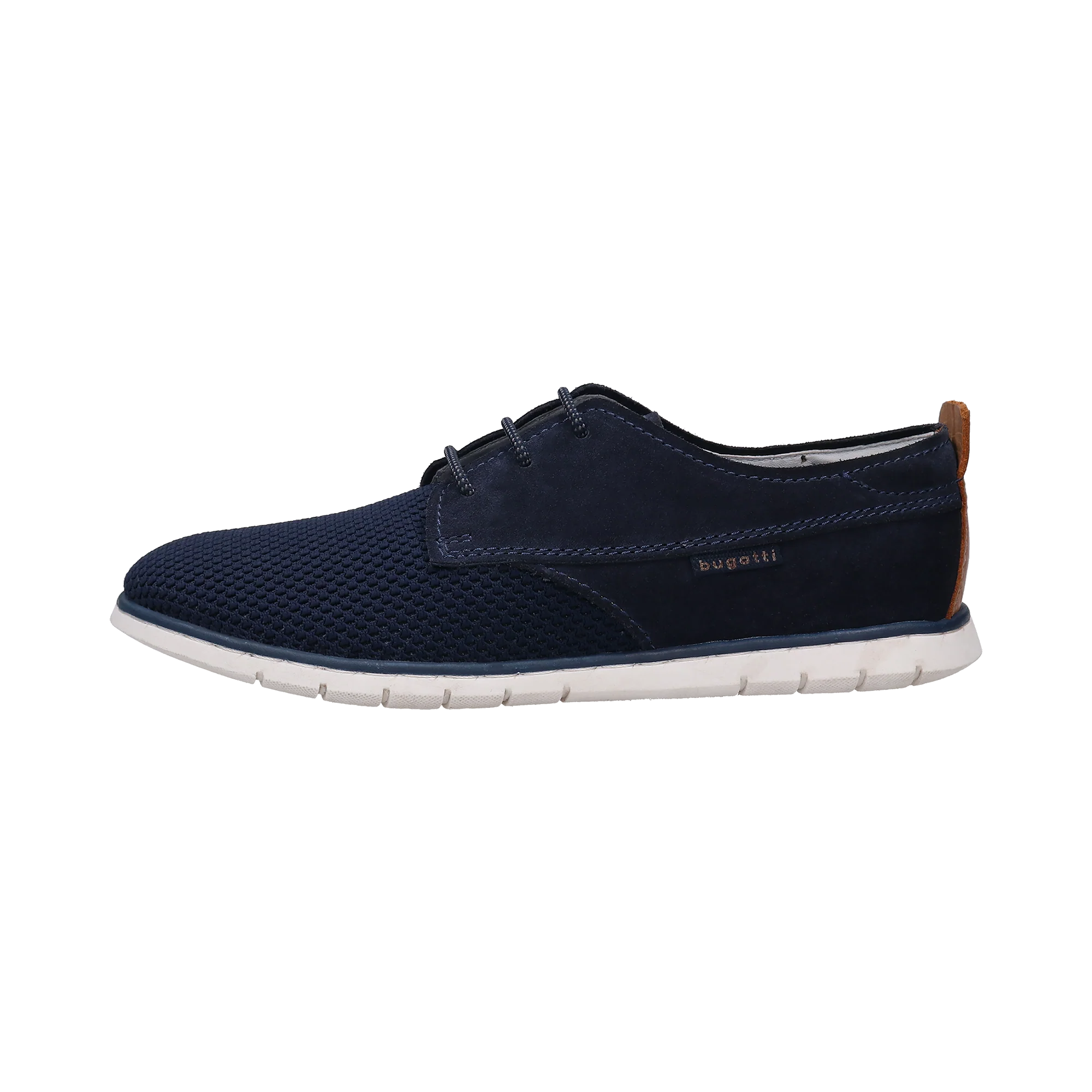 Einzigartige Details lassen diese blauen Sneaker der bugatti Herrenkollektion zu einem interessanten Bestandteil deiner Ausstattung werden. Kontraste zum weichen Leder mit Perforationen und Ziernähten, bilden der kognakfarbene Pull-up und die weißen, dünnen Sohlen mit Soft-Flex-Funktion.