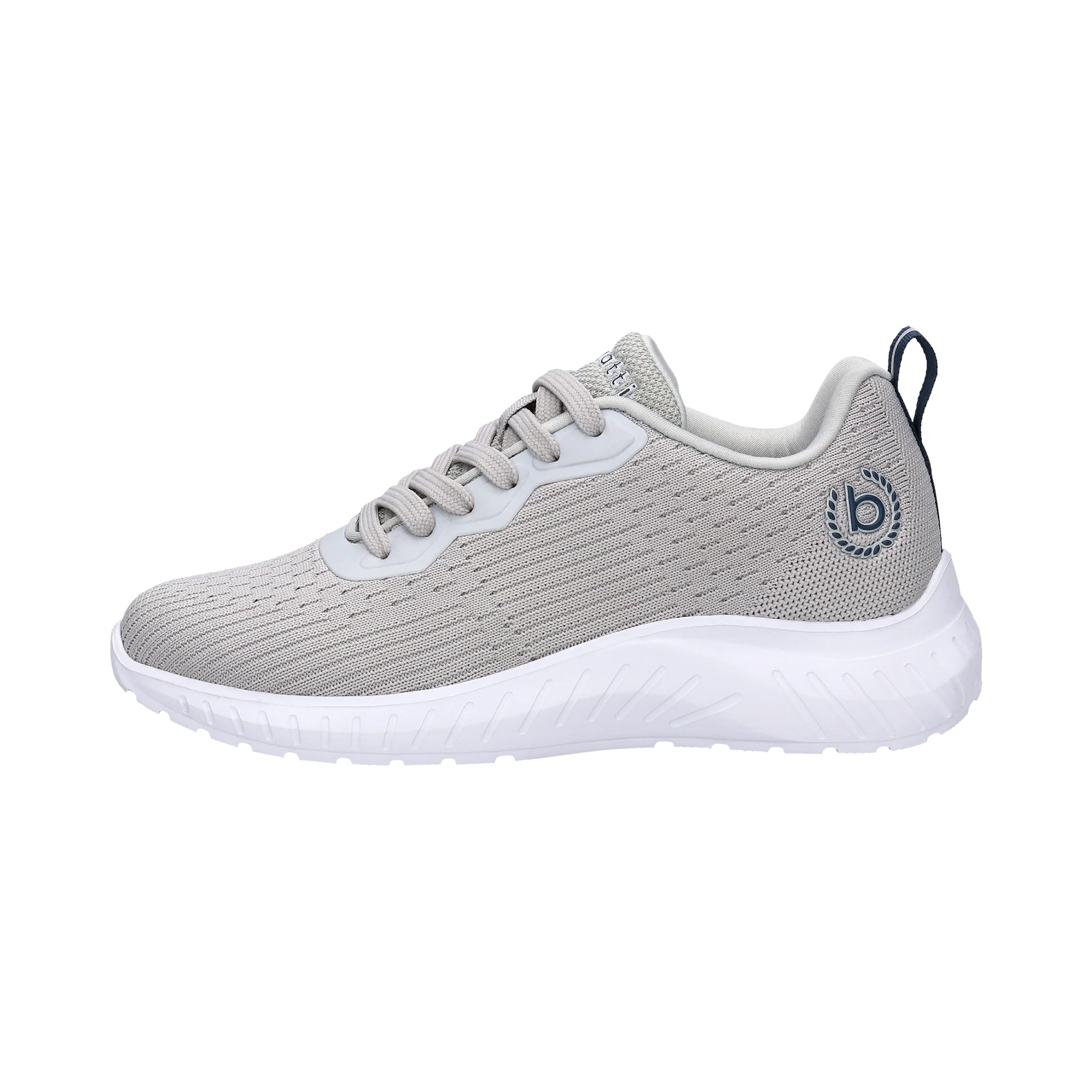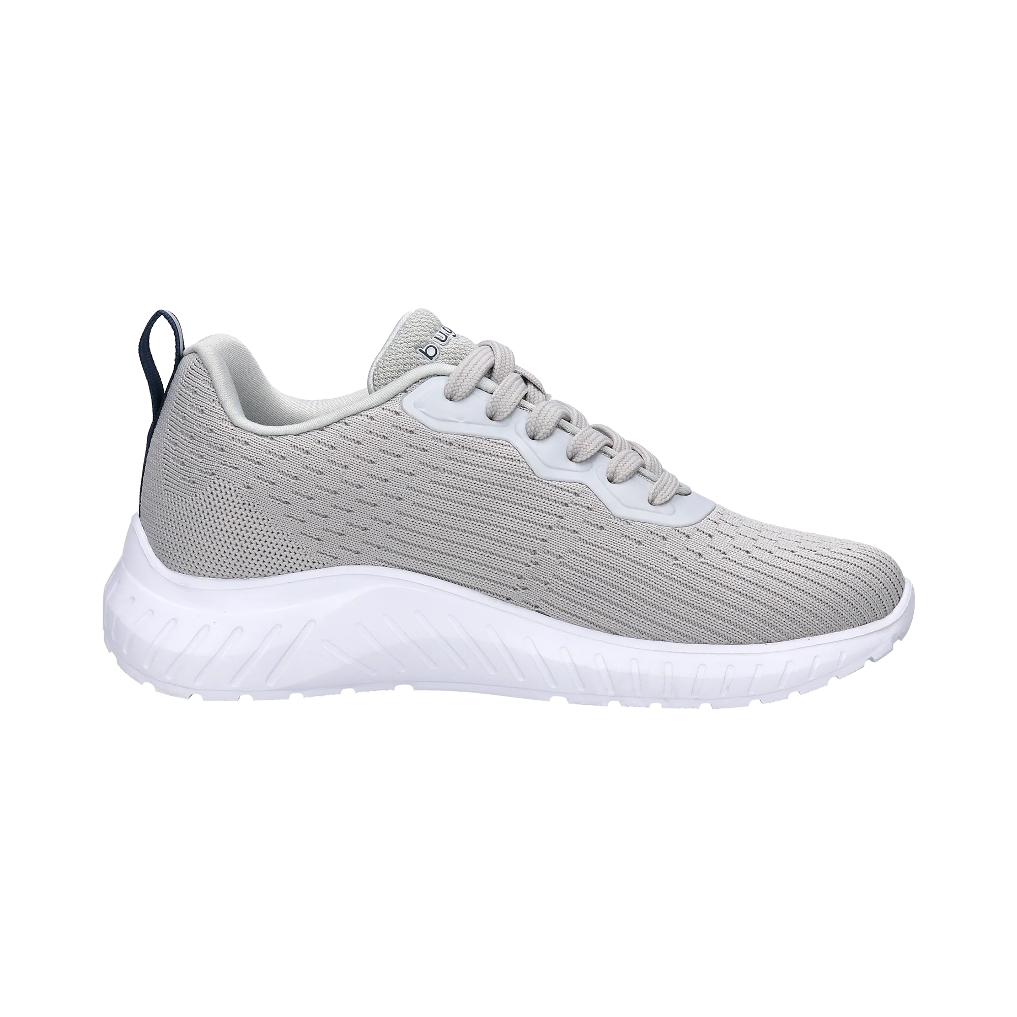 Damen Sneaker aus hellgrauem Flechtmaterial mit Gummischoner entlang der Schnürsenkel und Pull-up Lasche zum vereinfachten Anziehen. Das Richtige für aktive Tage, wenn die Sohlen sehr gut dämpfen und flexibel auf den Untergrund reagieren.
