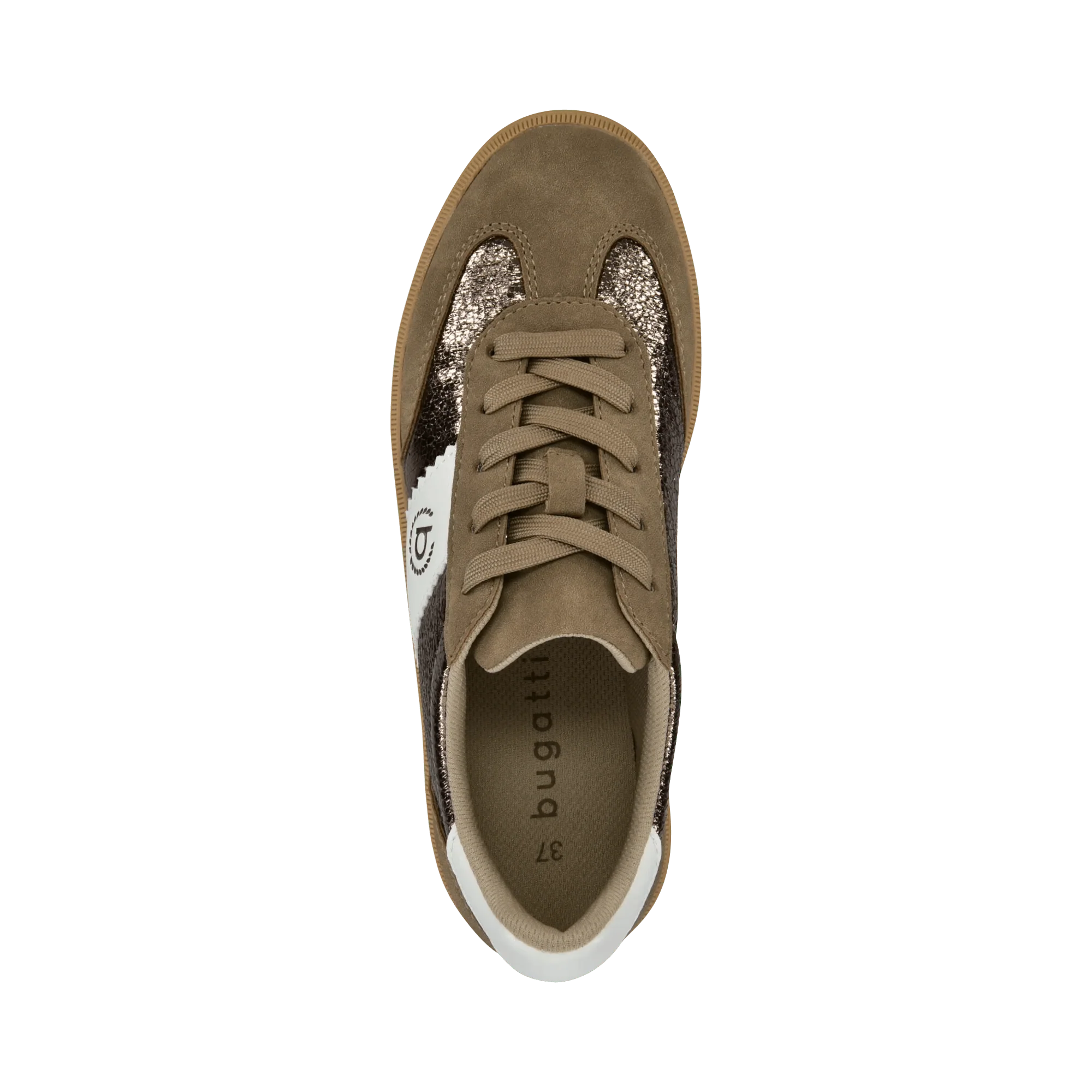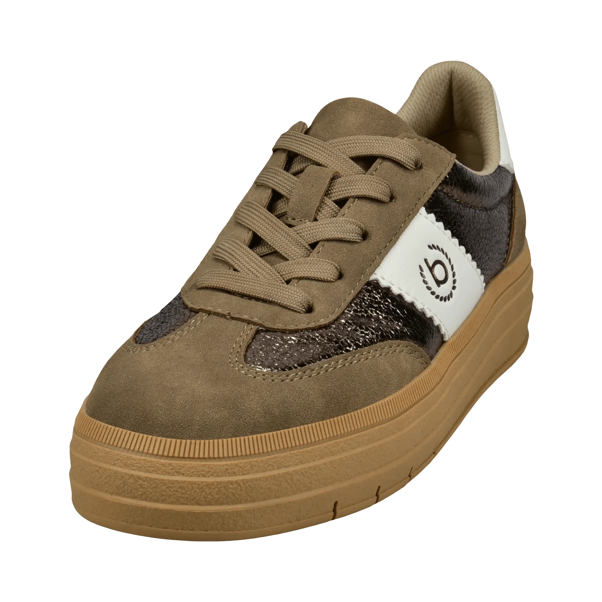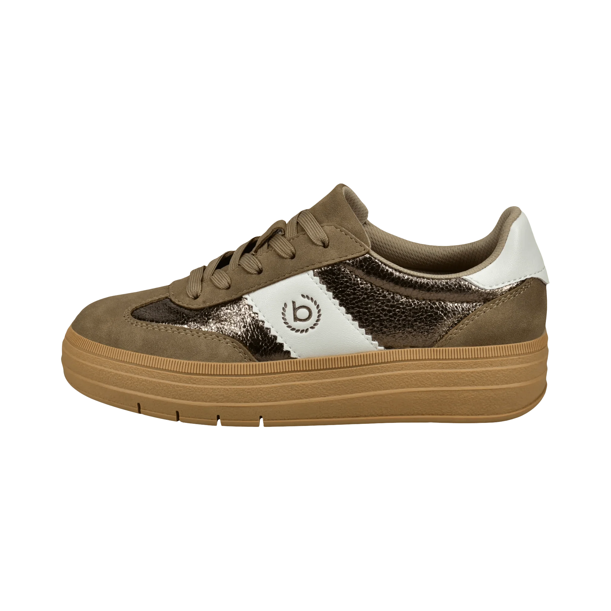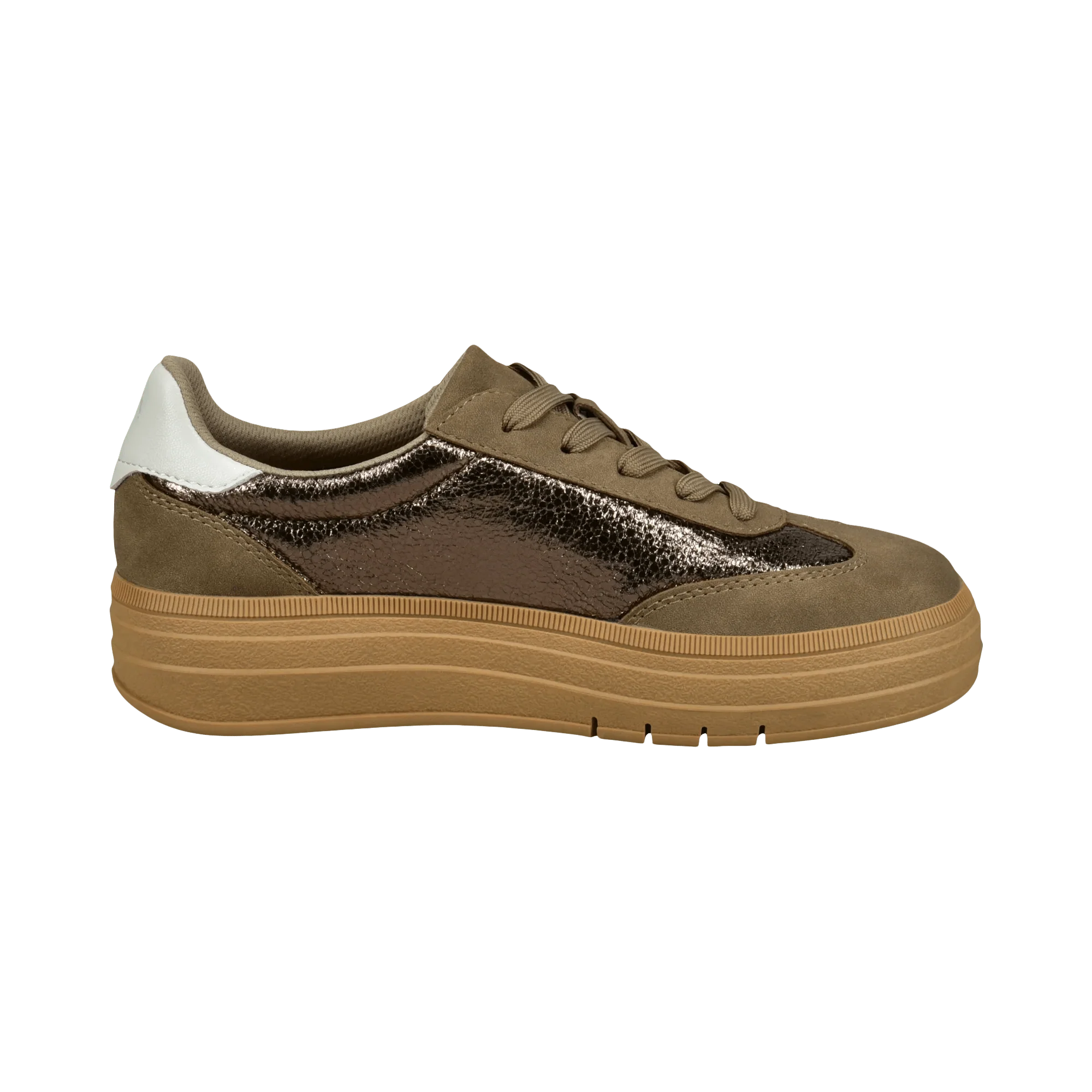 Diese Damen-Sneaker bestechen durch ein anspruchsvolles und zugleich vielseitiges Design in erdigen Farbtönen mit braunen Nuancen, metallischen Akzenten und weißen Kontrasten. Kombinieren Sie sie mit einem monochromen Outfit und verleihen Sie jedem Look eine besondere Note. Gefertigt auf einer robusten, dabei dennoch leichten Sohle, überzeugen sie durch hohen Tragekomfort und Langlebigkeit. Genießen Sie den Alltag in vollen Zügen und setzen Sie bei jedem Auftritt ein modisches Statement.
