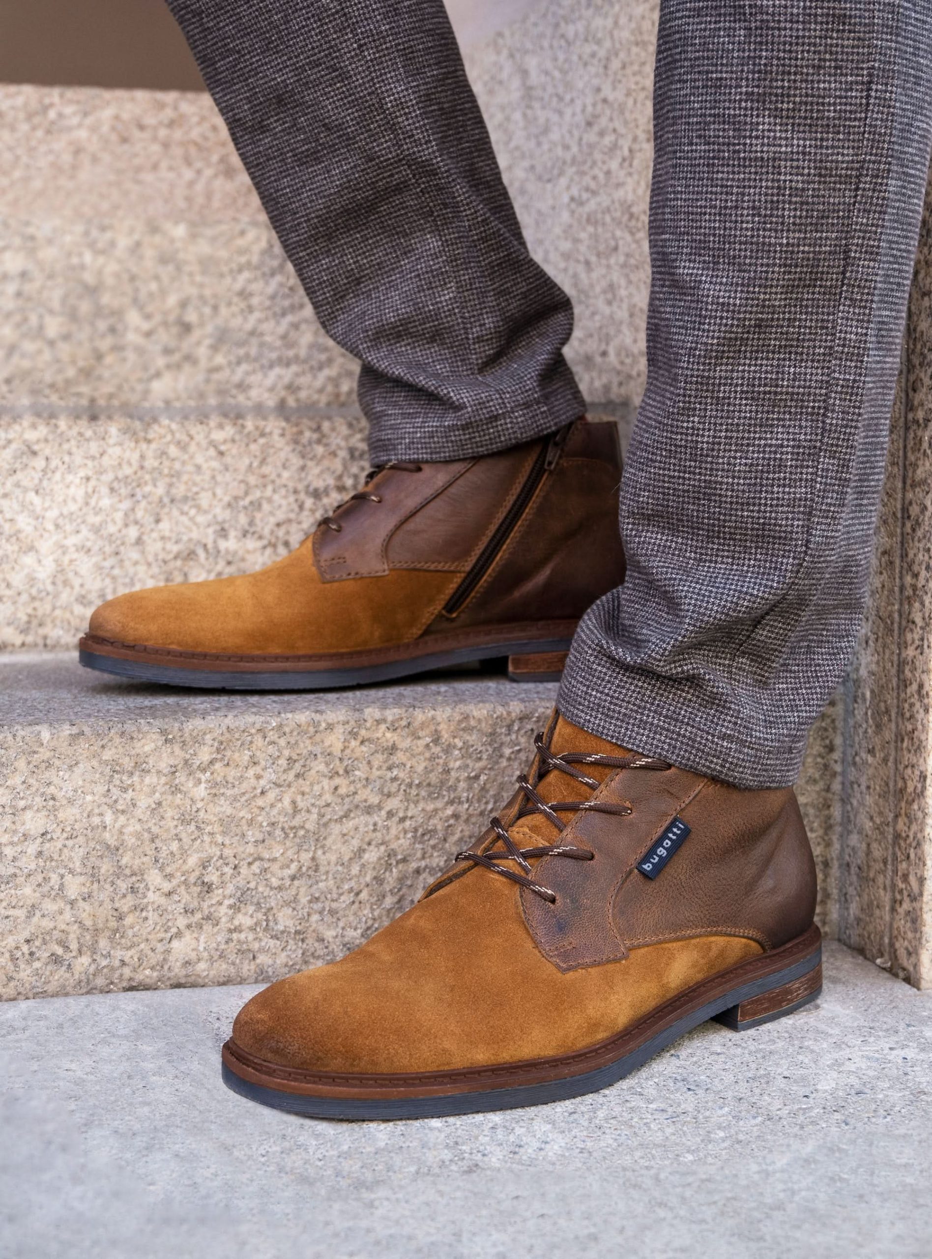Diese cognacfarbenen Herrenstiefel sind mit einer Schnürung für eine individuelle Passform und einer Laufsohle aus thermoplastischem Gummi ausgestattet. Sie sind aus Leder gefertigt, haben einen 26 mm hohen Absatz und eignen sich perfekt für jeden formellen Anlass.
